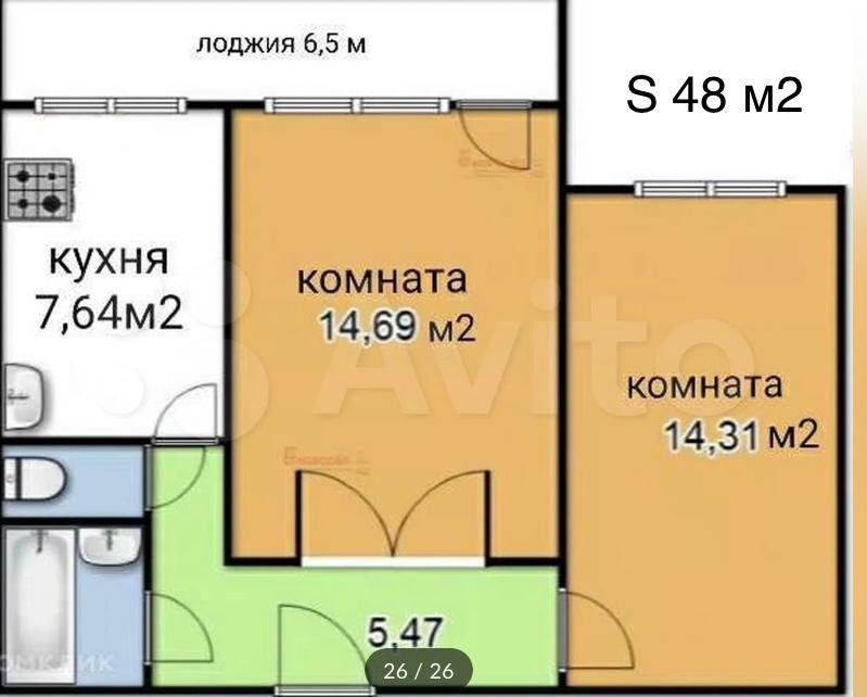 Общая площадь 47.5 м2