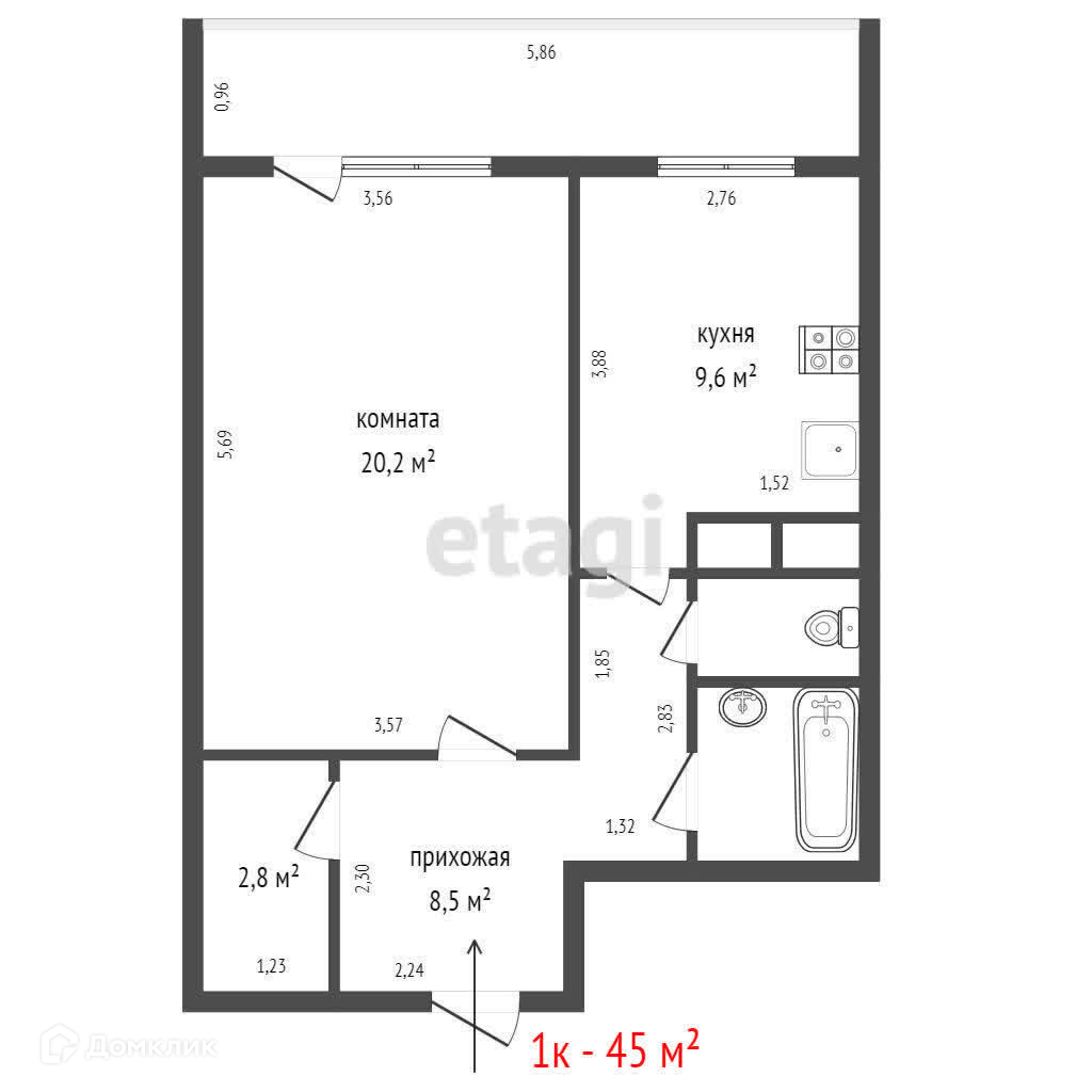 Общая площадь 45 м2