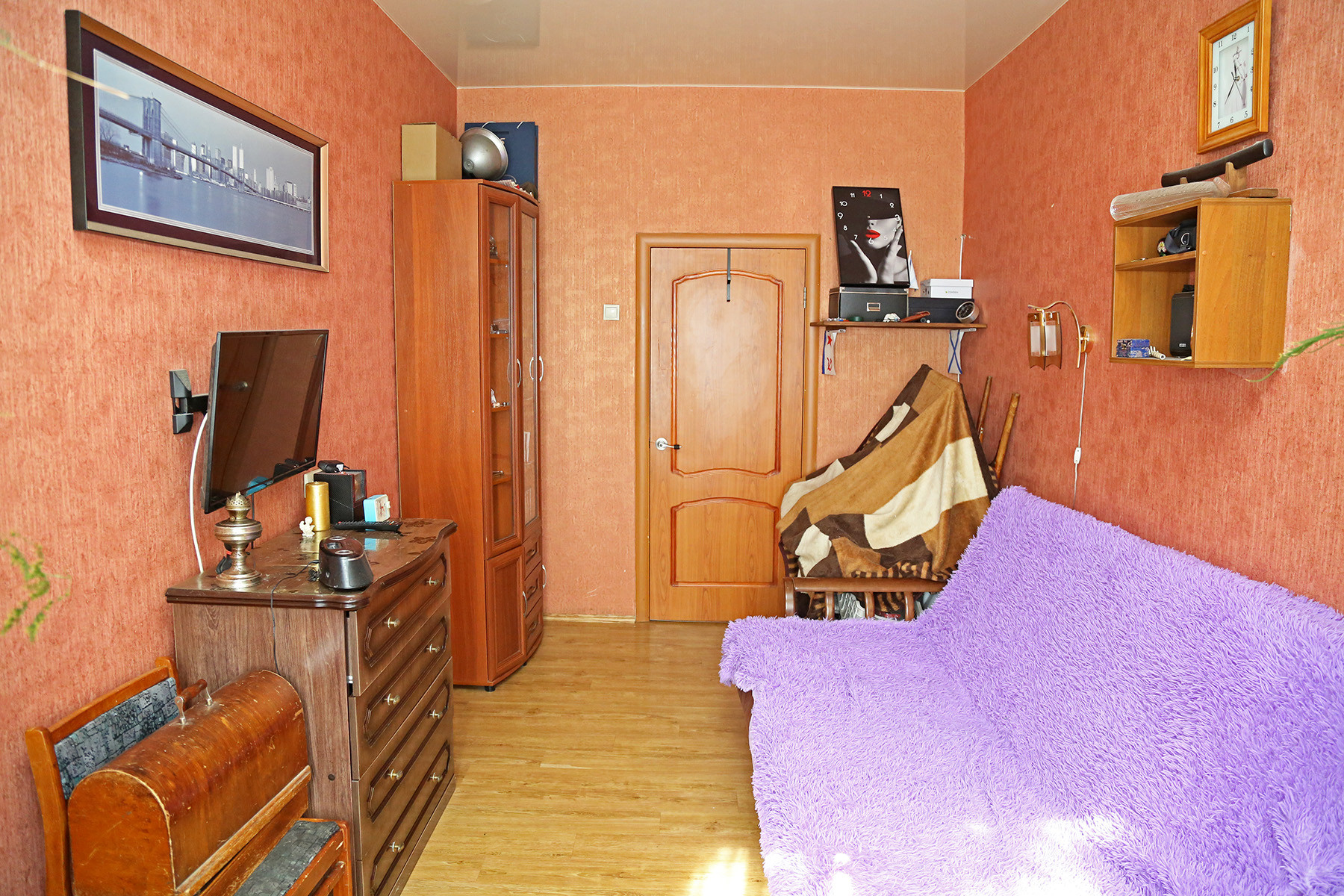 При продаже в квартире остается шкаф-купе в комнате, кухонный гарнитур.