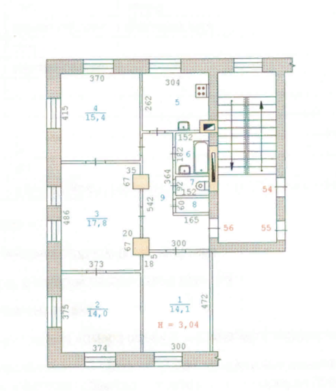 Жилая площадь 61.3 м2