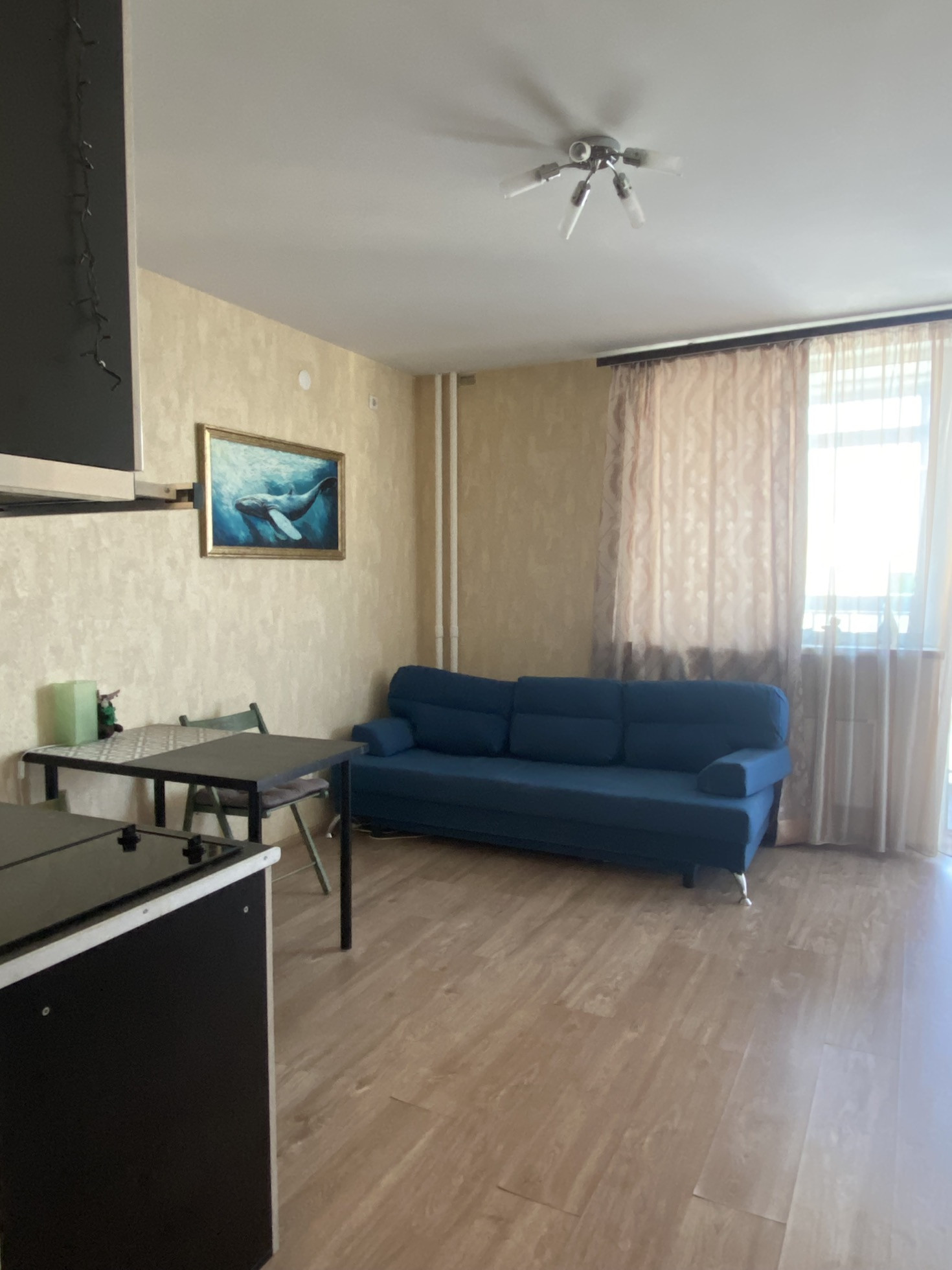 - покупателю остаётся: стиральная машина, кухонный гарнитур, диван раскладывающийся, холодильник, шкаф в коридоре, шкафчики и жалюзи на лоджии;