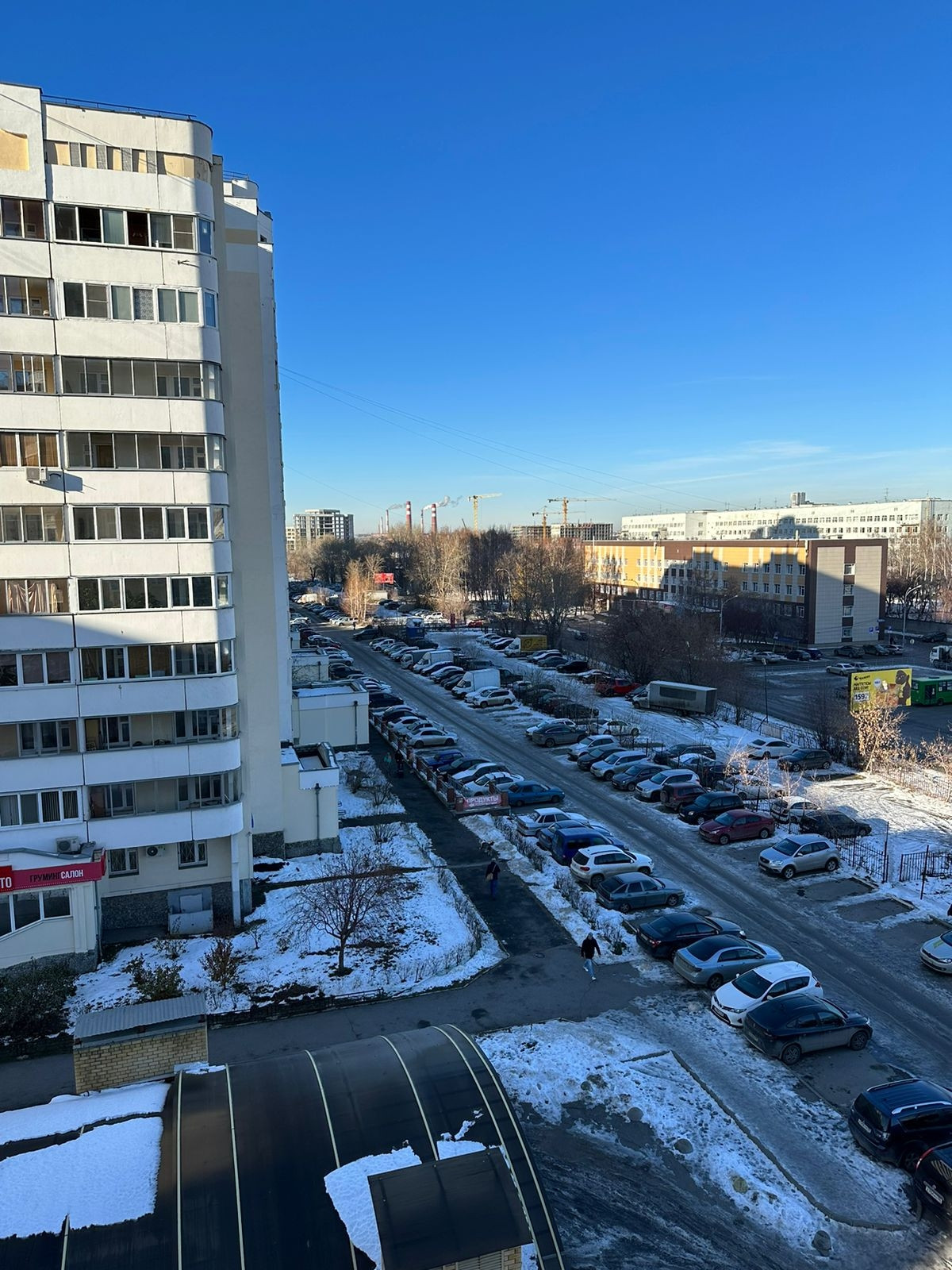 Окна выходят на ул. Вилонова (парковку перед домом).