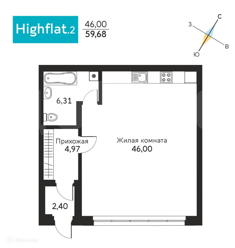 Жилая площадь 46 м2