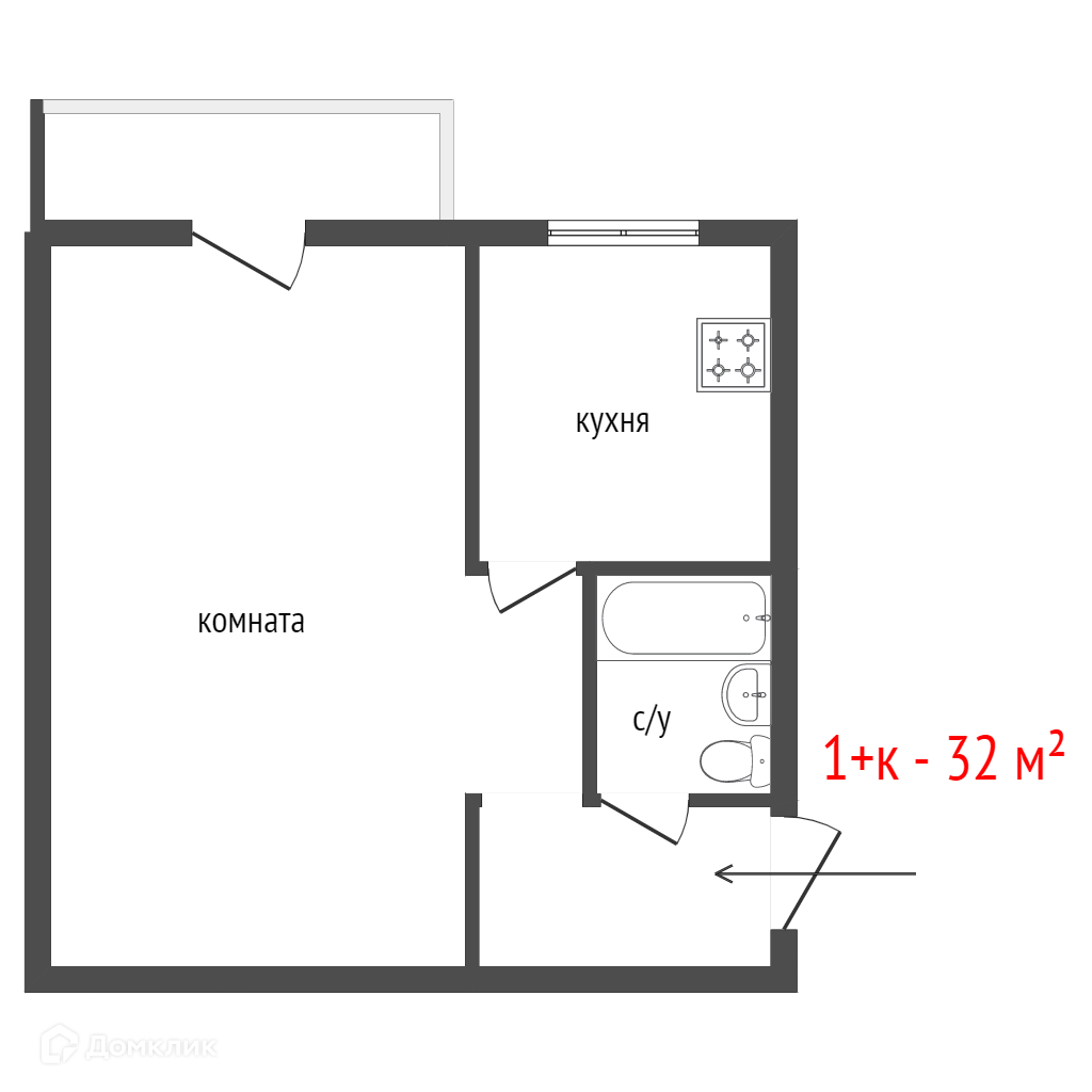 Общая площадь 30.6 м2