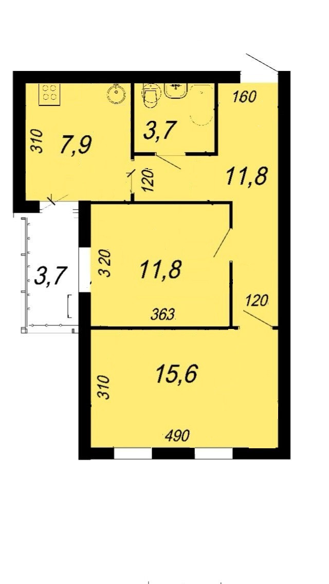 Балкон, лоджия 1 балкон