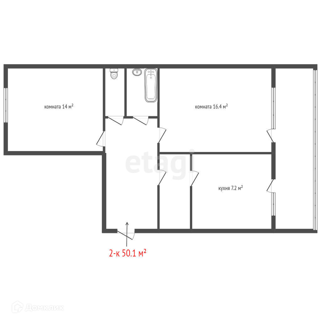 Общая площадь 50.1 м2
