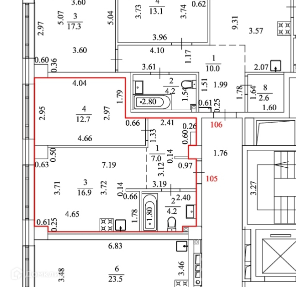Общая площадь 40.8 м2