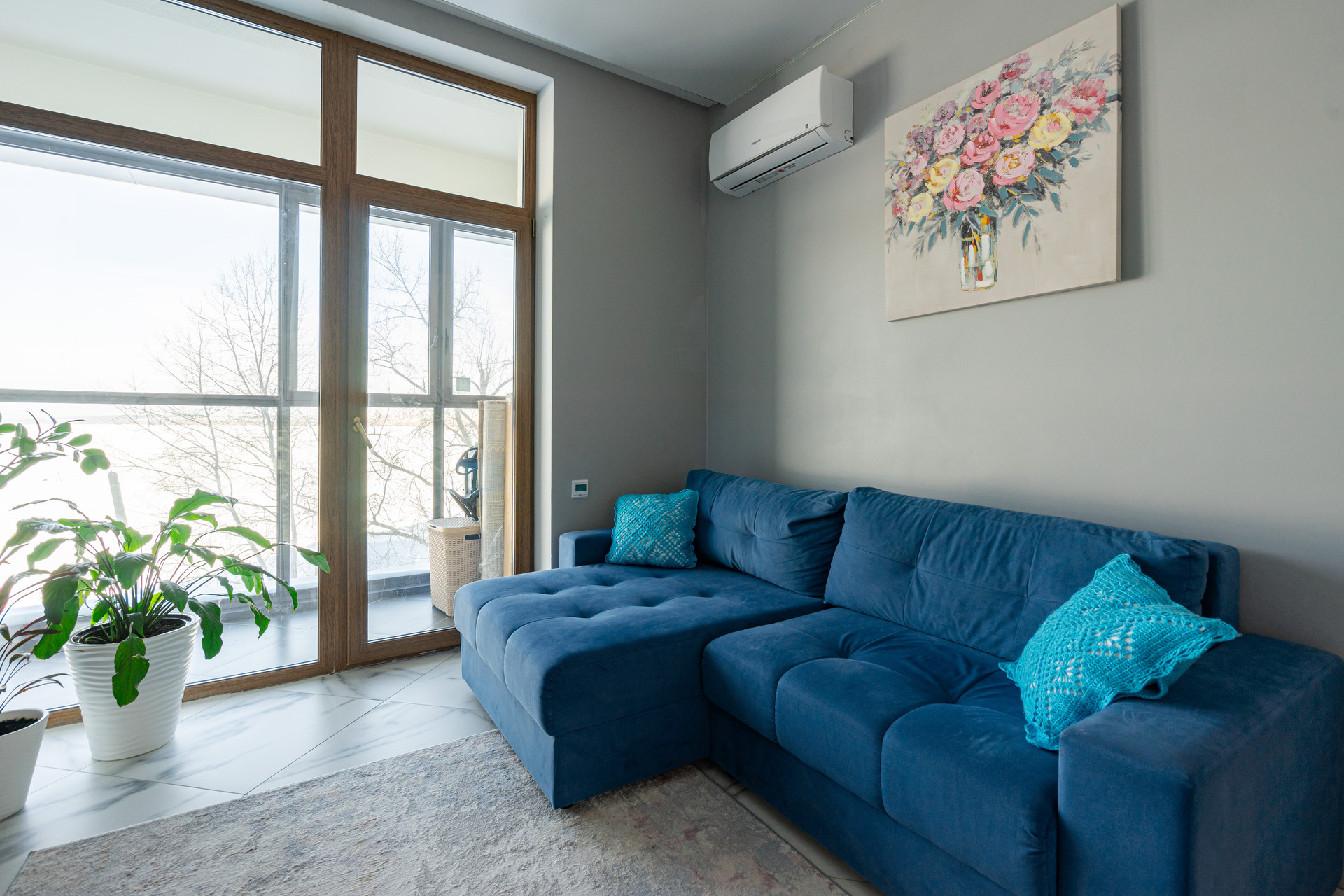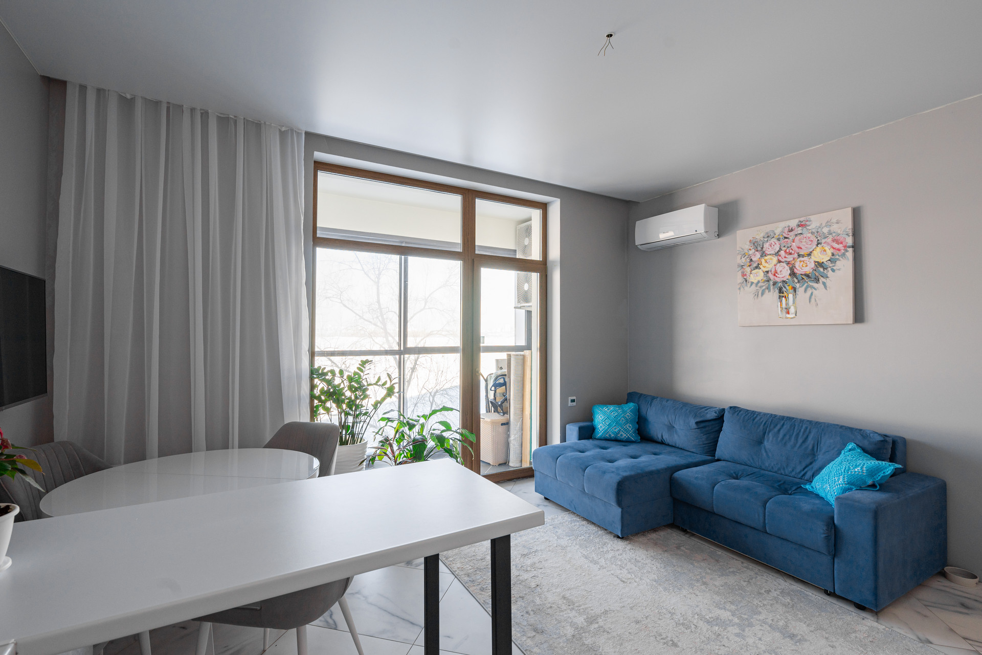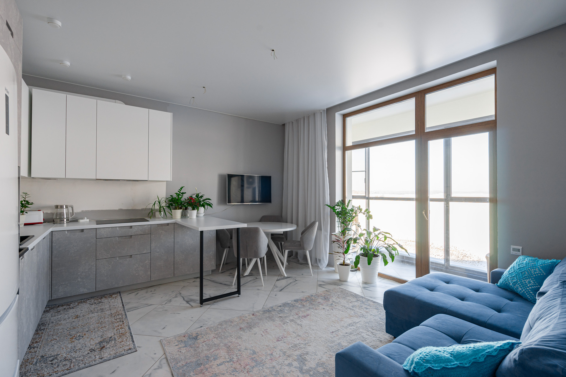 Высота потолков 2,9 м, перепланировок не было. В квартире большая кухня с гостиной, две спальни, два санузла, большая прихожая, лоджия и гардеробная. Из спален вид на пруд, остров и уральские холмы. Из мебели остается все: кухня, техника Haier, посудомоечная машина, стиральная машина, микроволновка, духовой шкаф, холодильник. Северная сторона: зимой тепло, летом не жарко