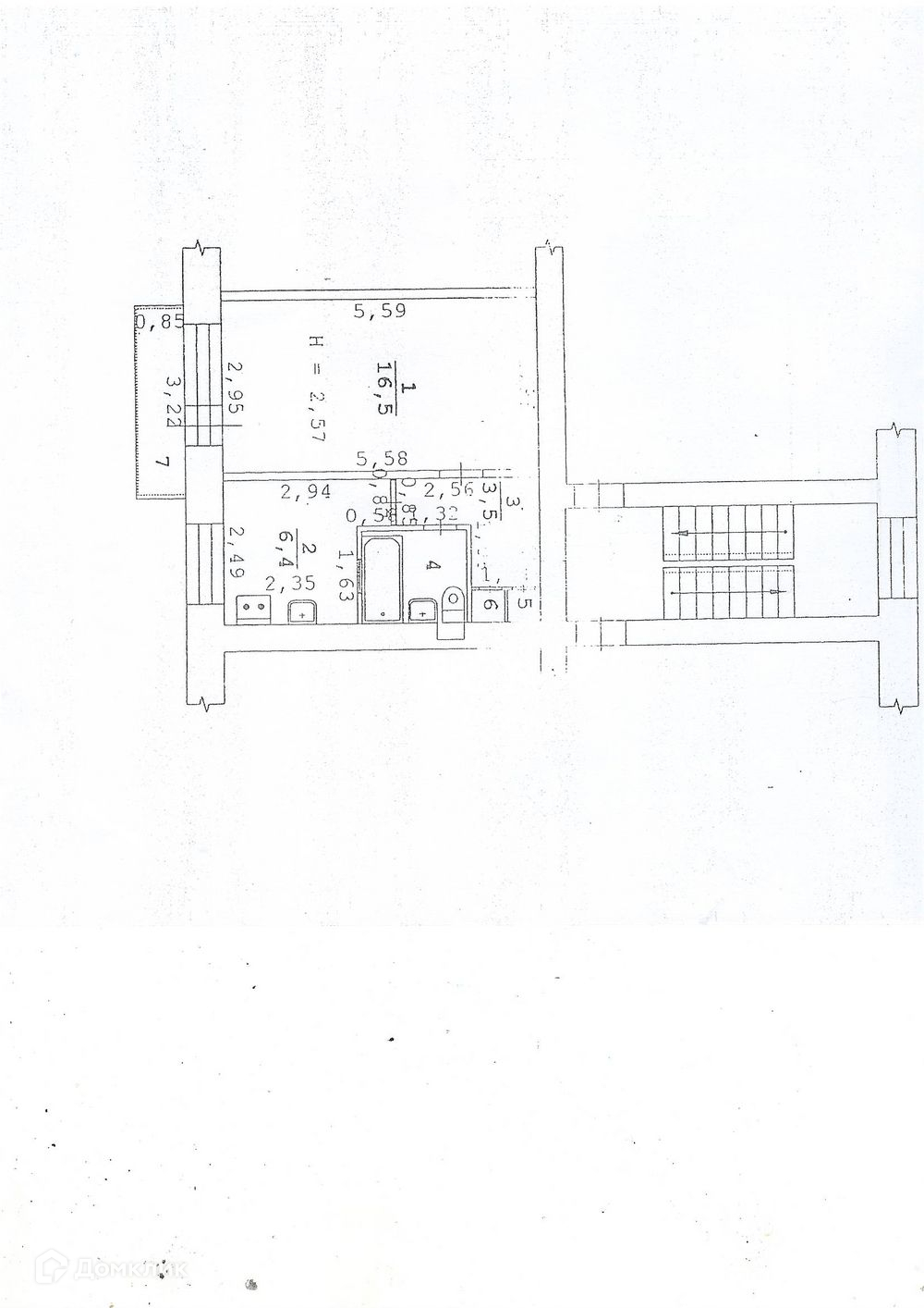 Высота потолков 2.57 м