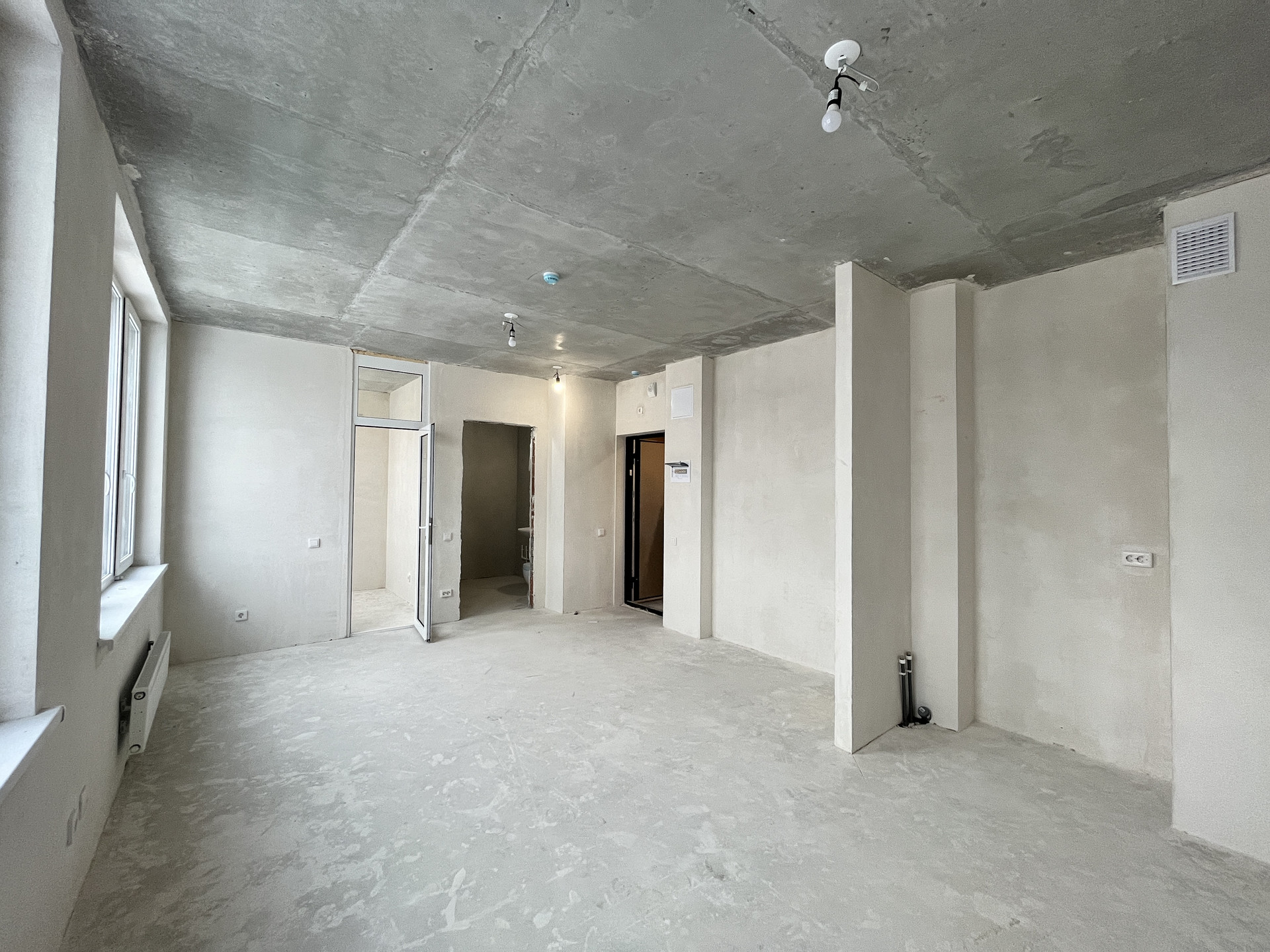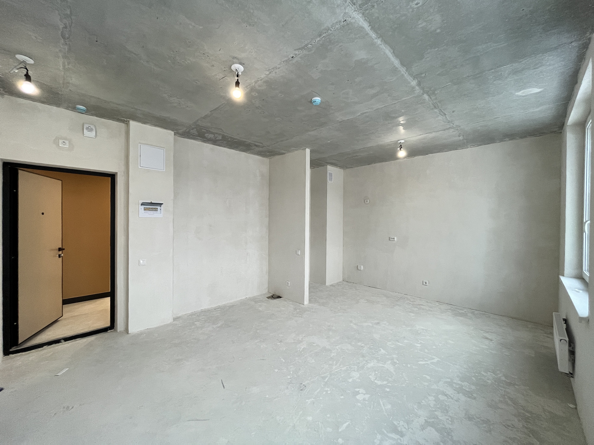 В квартире сделана подготовка к чистовой отделке от застройщика. Установлены стеклопакеты. Удачная планировка студии, комната - прямоугольной формы, светлая, за счёт трёх панорамных окон, лоджия теплая и может быть использована, как дополнительная комната, например, как кабинет или небольшая детская комната. В санузле установлен унитаз и раковина. Квартира оборудована счётчиками воды, электричества и тепла, которые автоматически передают показания в управляющую компанию. Очень красиво и качественно выполнены места общего пользования, есть санузел на первом этаже, где можно не только помыть руки не поднимаясь в квартиру, если гуляешь с ребенком, но и помыть лапы питомцу. Есть оборудованная колясочная для хранения колясок и велосипедов. Так же желающие могут приобрести кладовую на первом этаже.