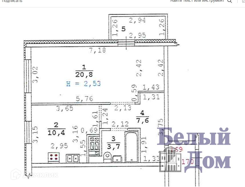 Балкон, лоджия 1 балкон