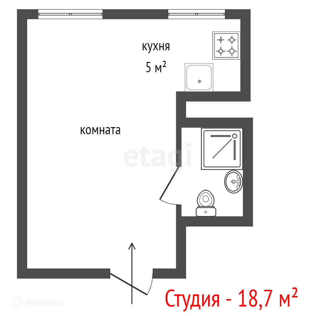 Общая площадь 18.7 м2