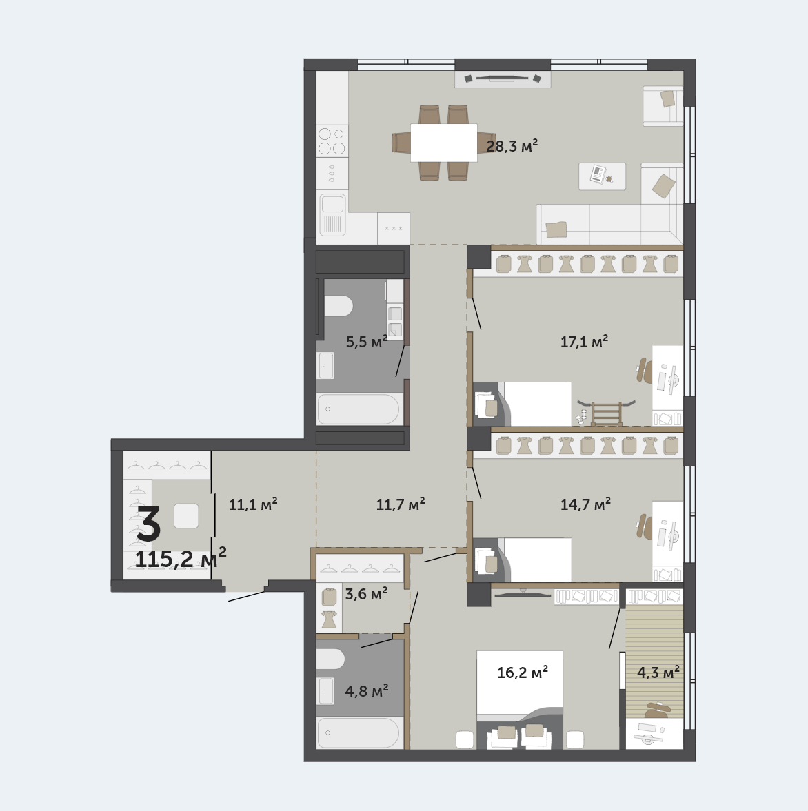 Общая площадь 115 м2