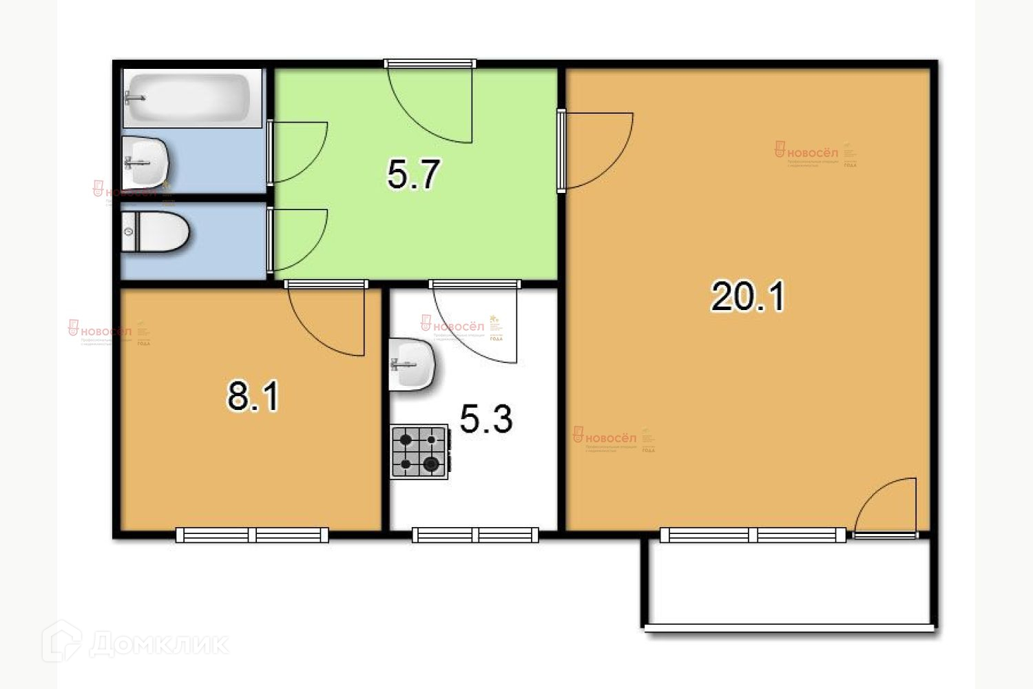 Общая площадь 44 м2