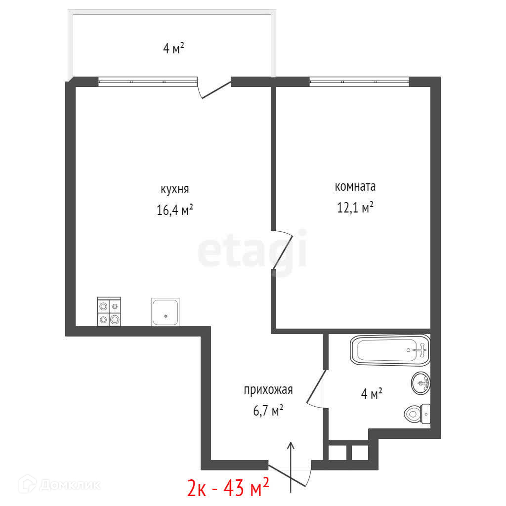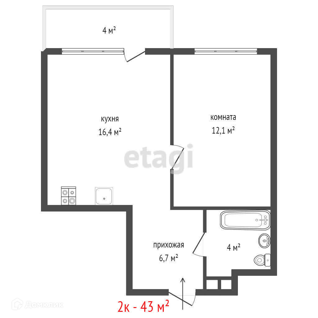 Общая площадь 43 м2