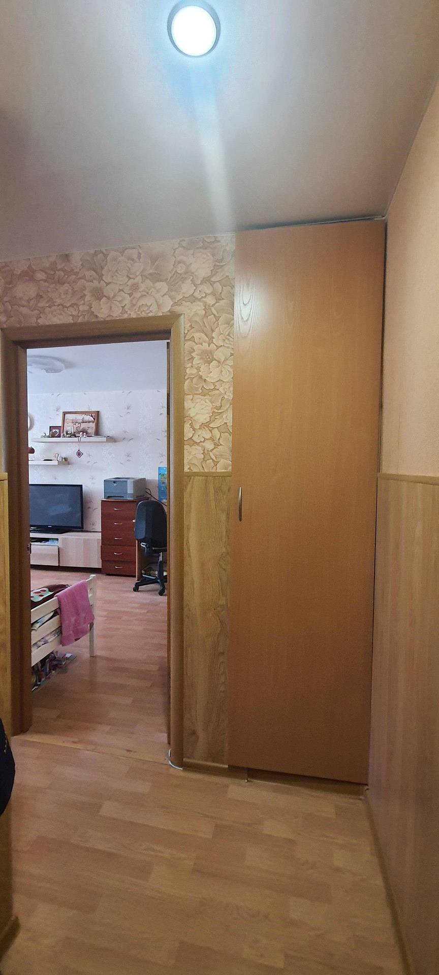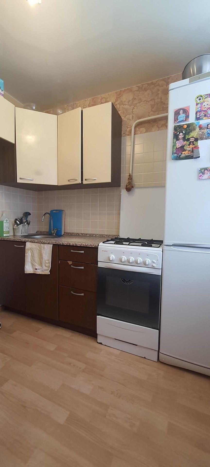 Квартира светлая, теплая, в хорошем состоянии: качественные стеклопакеты, санузел в кафеле. В квартире остается вместительный шкаф и кухонный гарнитур, есть кладовка.