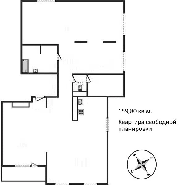 Квартира свободной планировки с возможностью выделить 4-5 комнат.