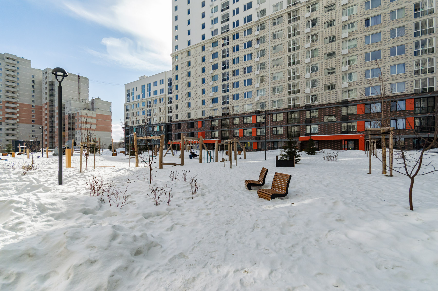 Жилой комплекс имеет статус повышенной комфортности. Дом обустроен светлыми просторными холлами и местами общего пользования, четырмя бесшумными высокоскоростными лифтами, колясочной. Закрытая и благоустроенная территория двора без автомобилей. Имеется возможность приобретения подземного паркинга и келлера для хранения вещей.
