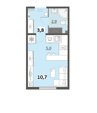 Квартира — СТУДИЯ. Без балкона.