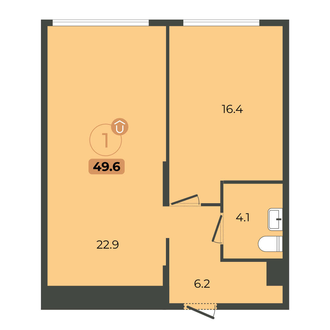 Общая площадь 49.6 м2