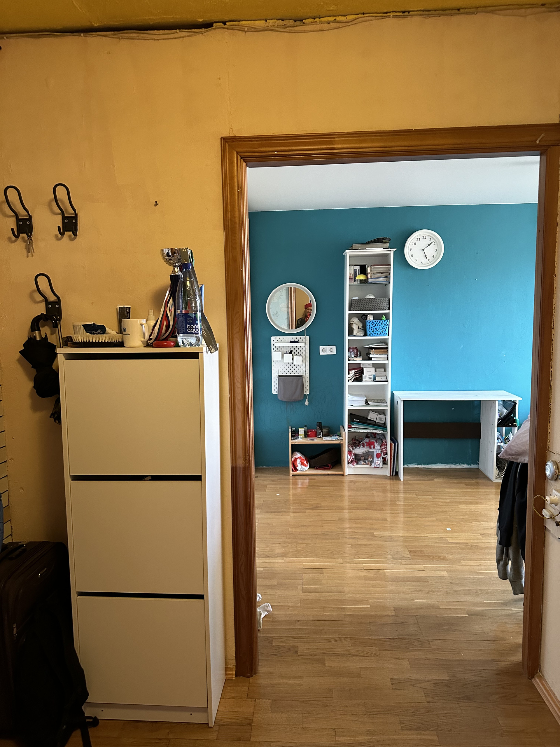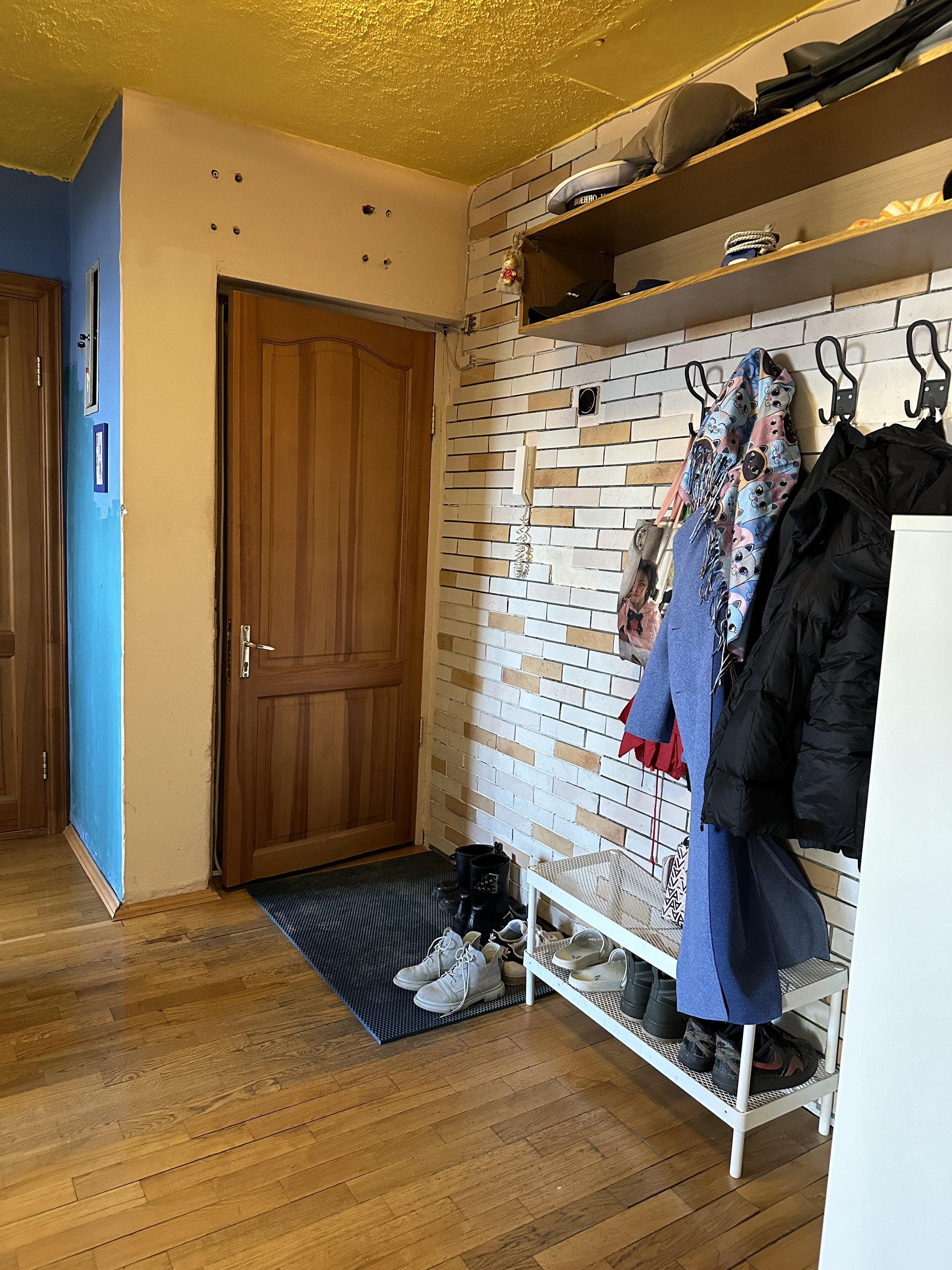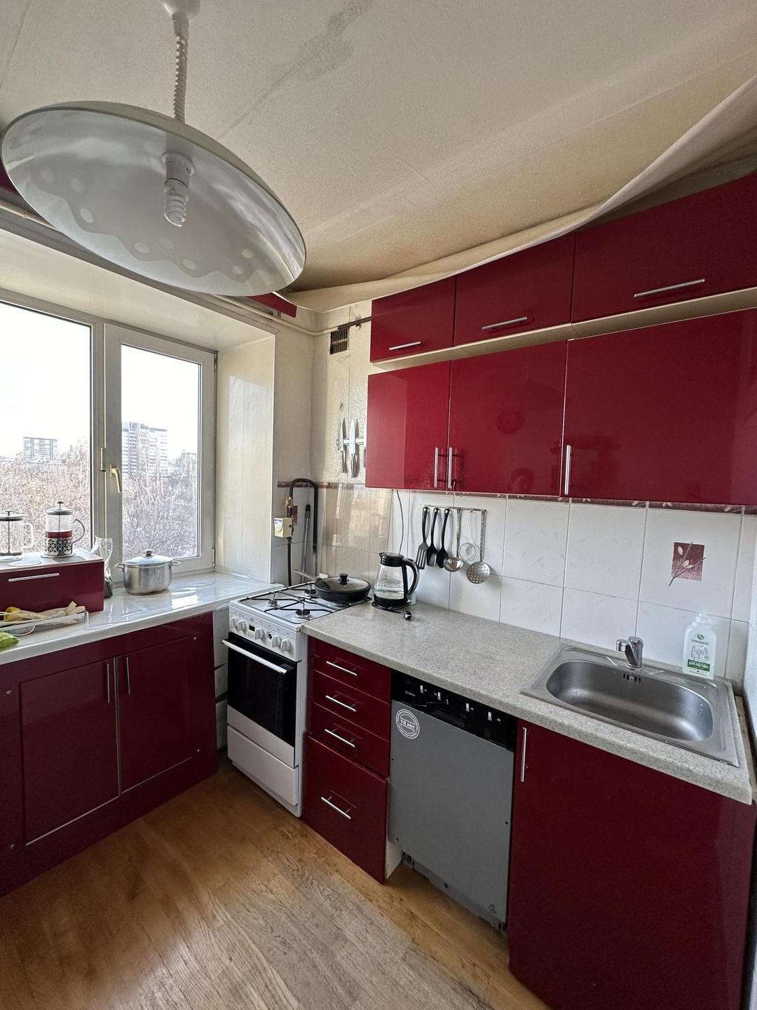 Остается кухонный гарнитур с техникой, посудомоечная машина, стиральная машина, шкаф для одежды, шкаф для обуви.