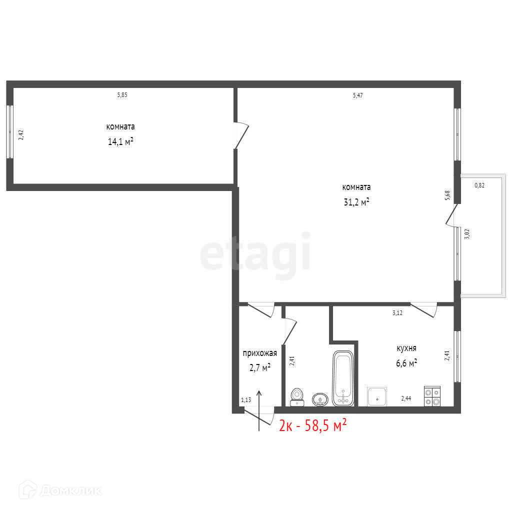 В ванной плитка, Площадь комнат 31,2 м. и 14,1 м. кухня 6,6 м.