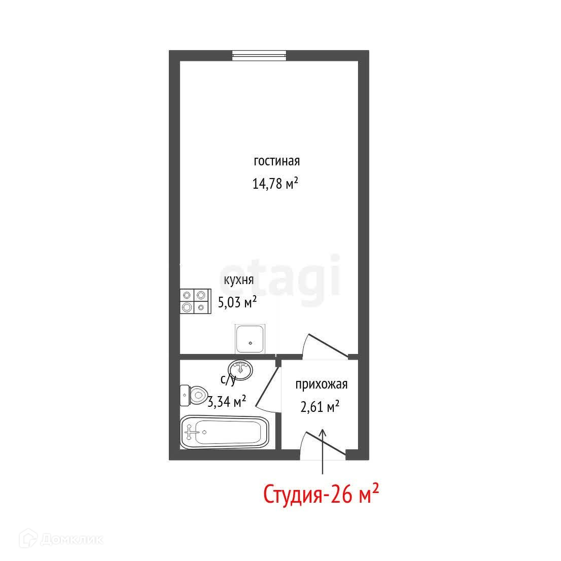 Общая площадь 26 м2