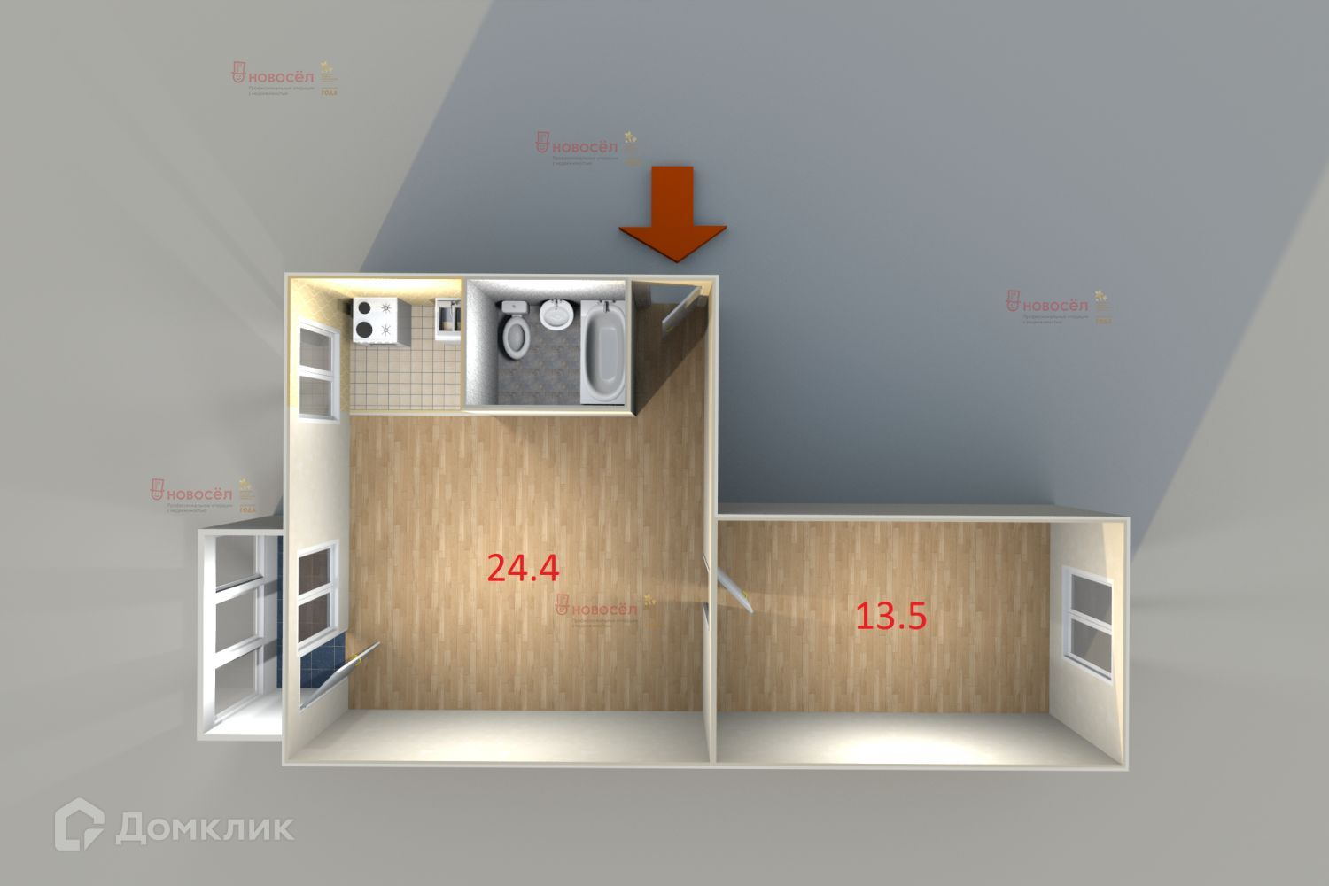 Общая площадь 43 м2