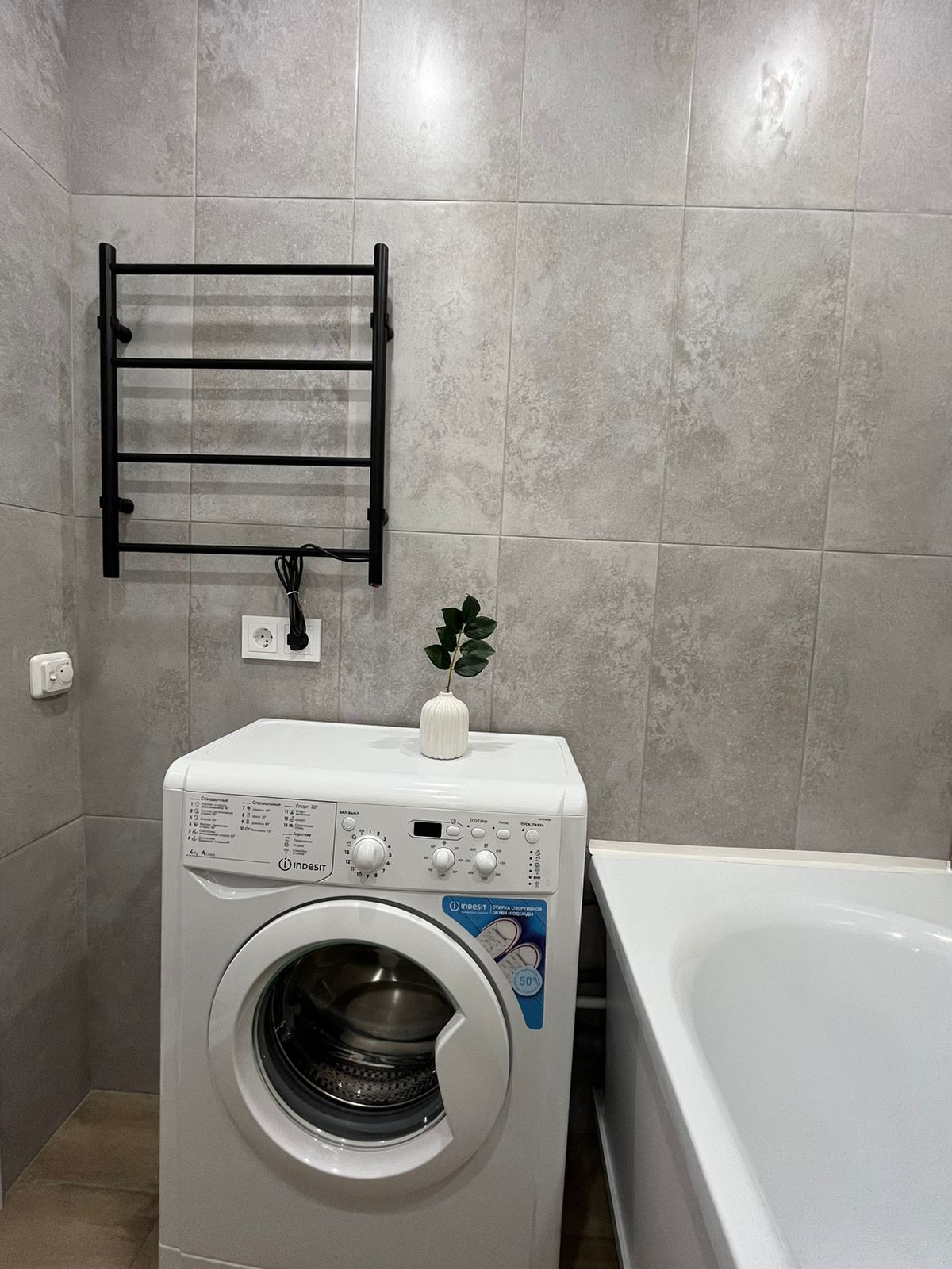 Большой шкаф шириной около 2 метров,в который без труда поместится все необходимое.Заменены проводка,сантехника,в ванне теплый пол.