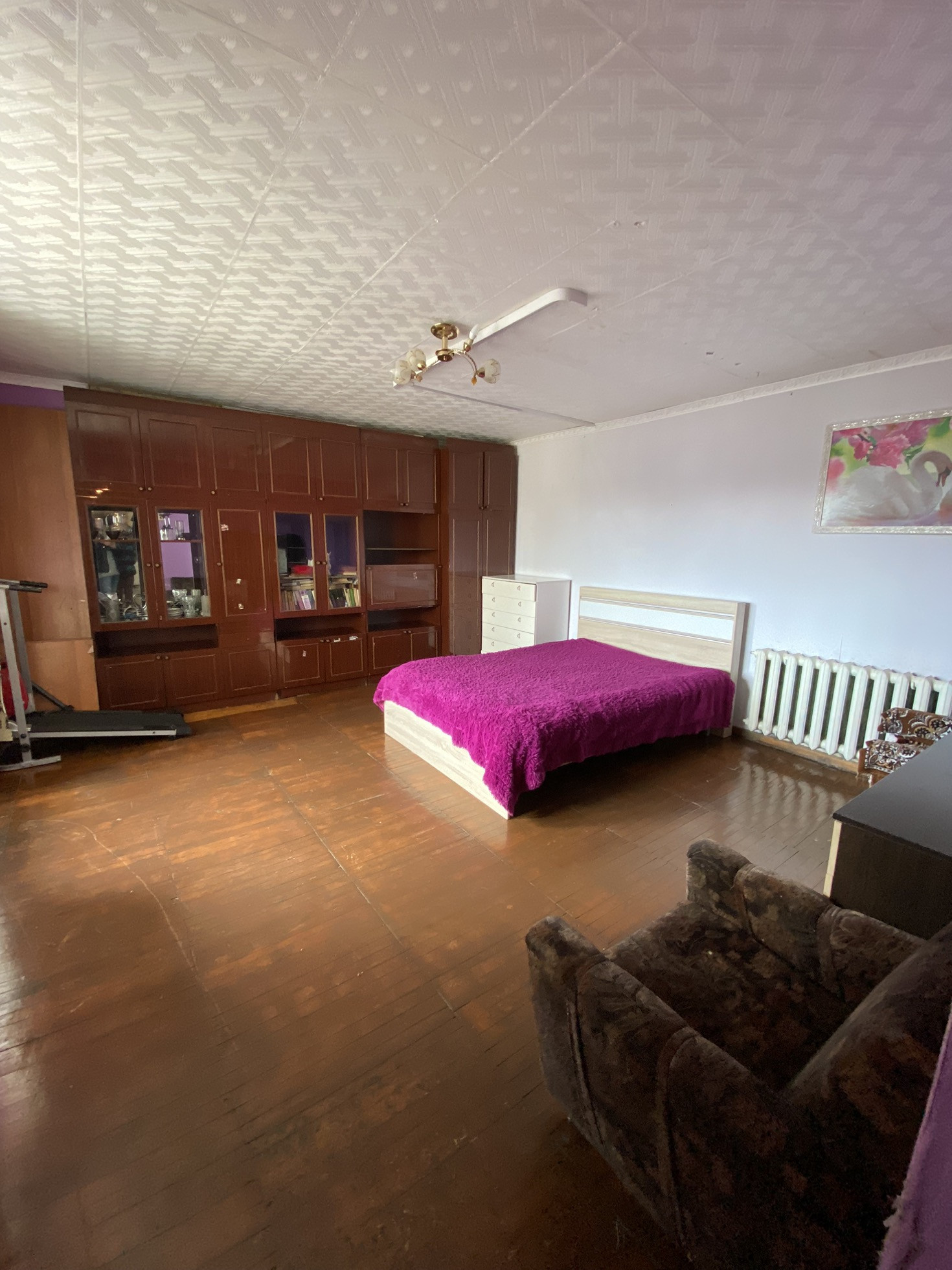 Четырехкомнатная в хорошем месте по локации квартира, закрытый двор, парковочное место, чистый подъезд и приличный соседи, рядом школы и детсады, весь транспорт: троллейбус, трамвай, МЕТРО. Без обременения и Долгов. Обмен подобран.