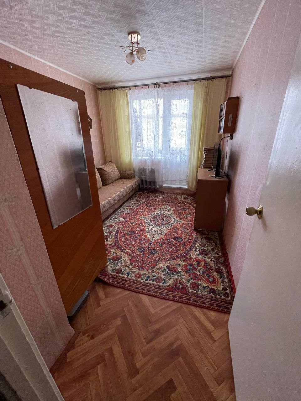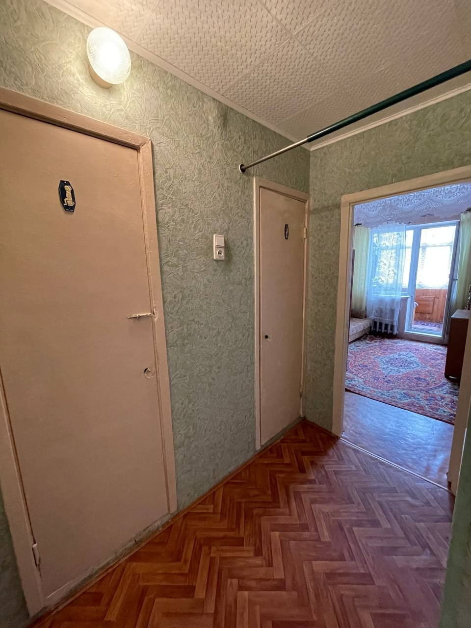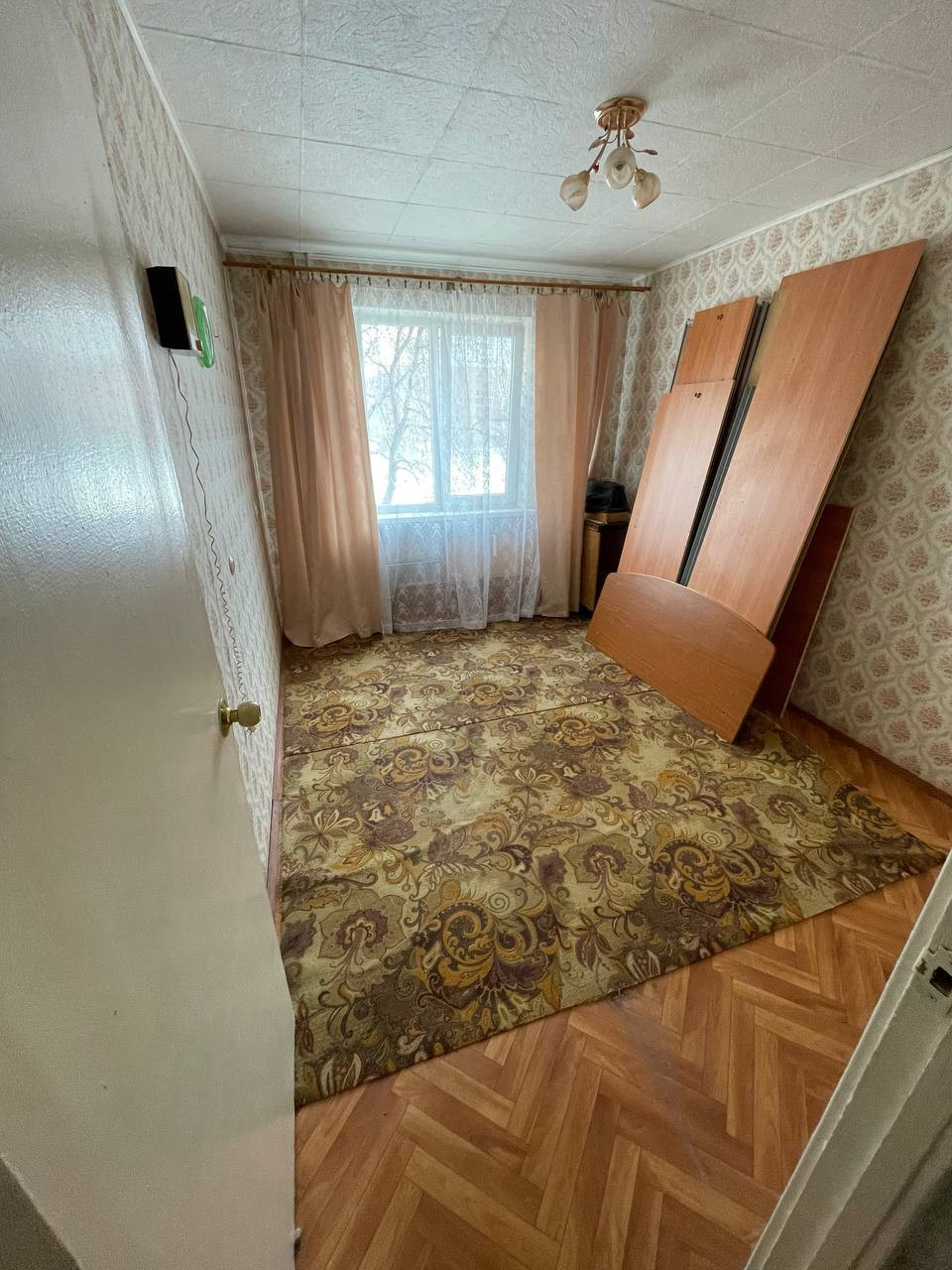 В квартире установлены стеклопакеты, счетчики холодной и горячей воды. Квартира требует ремонта.