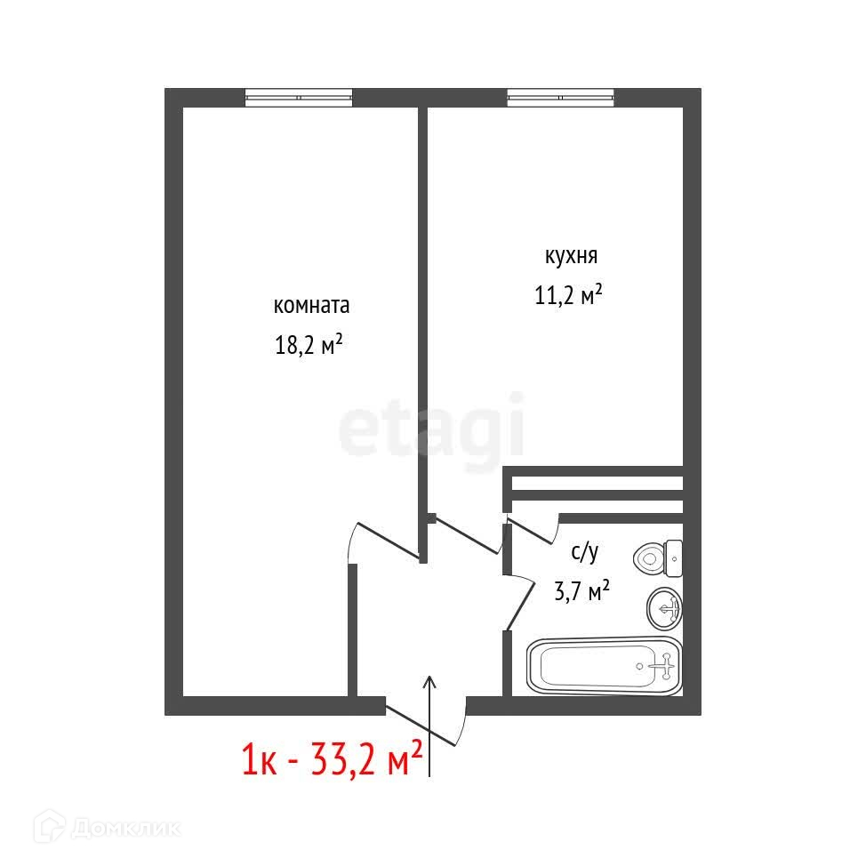 Общая площадь 33.2 м2