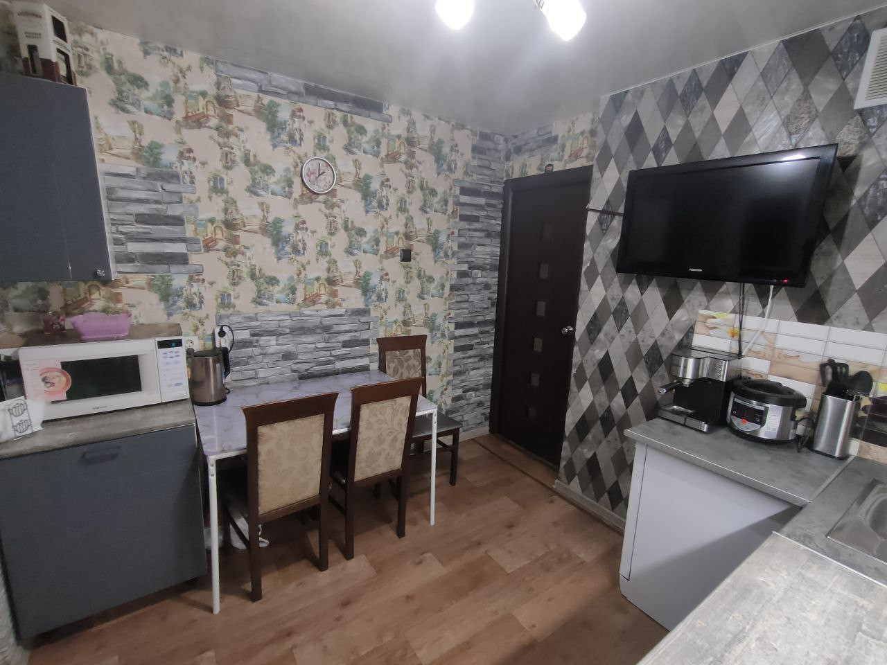 - Два  шкафа-купе, двухспальный диван из эко кожи  , а так же кухонный гарнитур остаются в подарок покупателю.