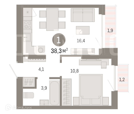 В продаже однокомнатная квартира, с отличной планировкой: уютной спальней с панорамным окном от стены до стены с выходом на террасу, вместительной кухней-гостиной, которая также имеет выход террасу, вместительным санузлом. В коридоре продумана ниша под шкаф-купе.