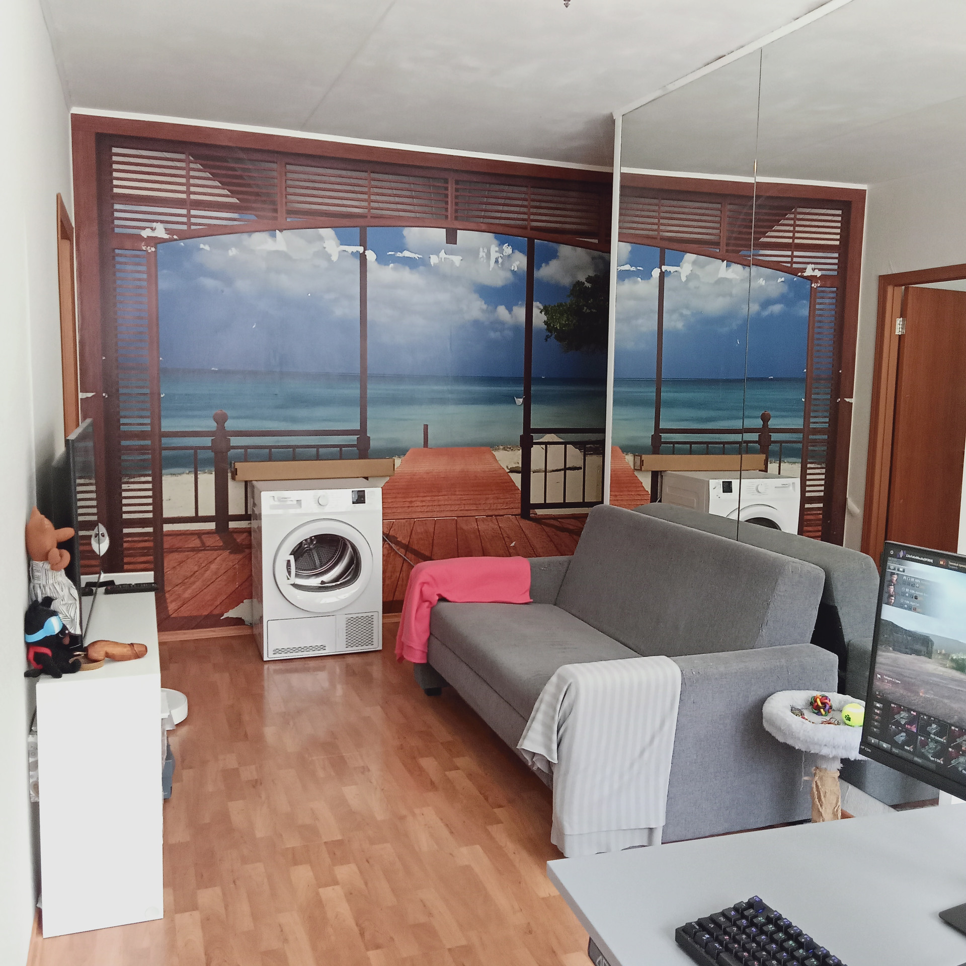 В квартире сделан частичный косметический ремонт.  Есть мини сауна.