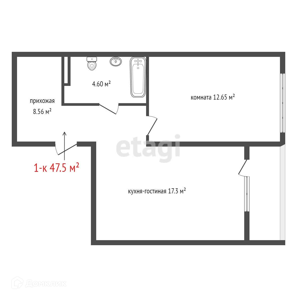 Общая площадь 47.5 м2