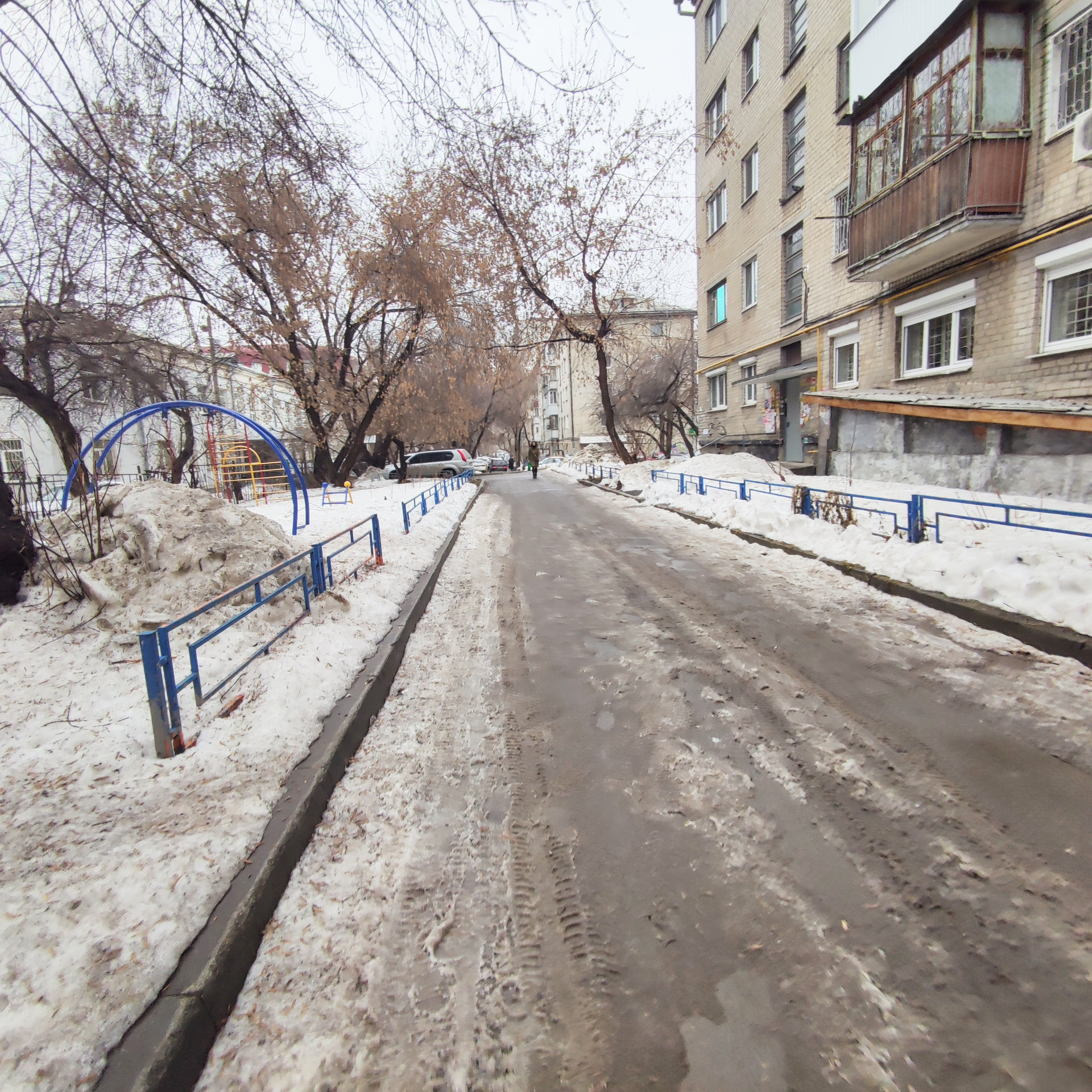 Территория двора большая, заезд через шлагбаум, много парковочных мест на при домой территории двора. Звезд через шлагбаум. Оборудованная детская площадка.