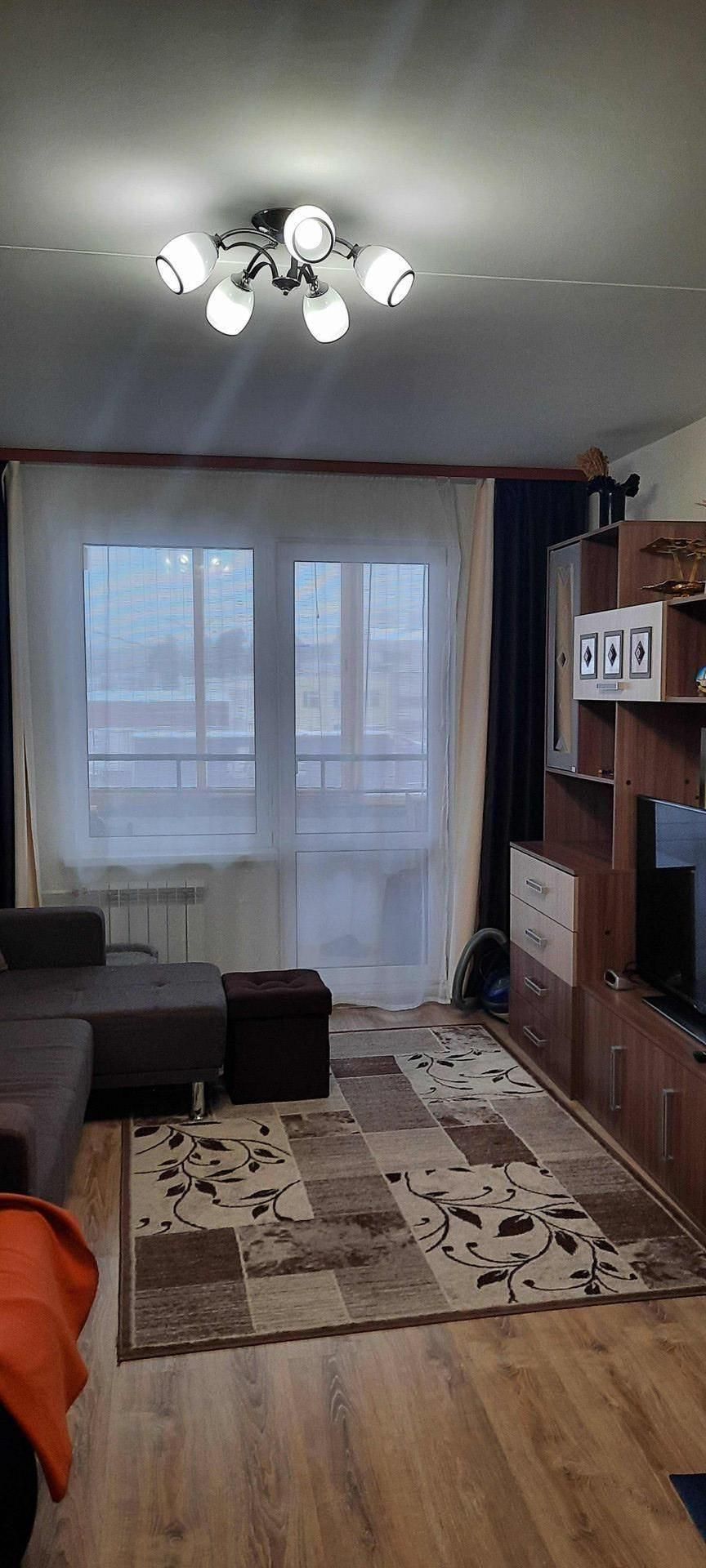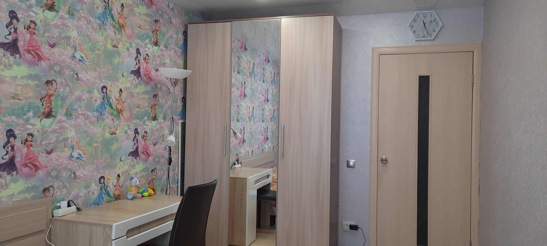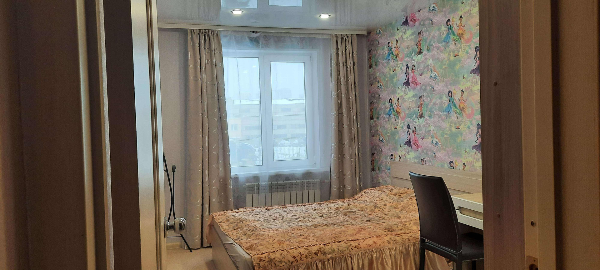 Удобная планировка. Комнаты раздельные с натяжными потолками - 14,4 кв.м, 11,7 кв.м., меблированы - в них остаются кровати, шкафы, письменный стол со шкафом, гостиная - 16,7 кв. м. - со стенкой.