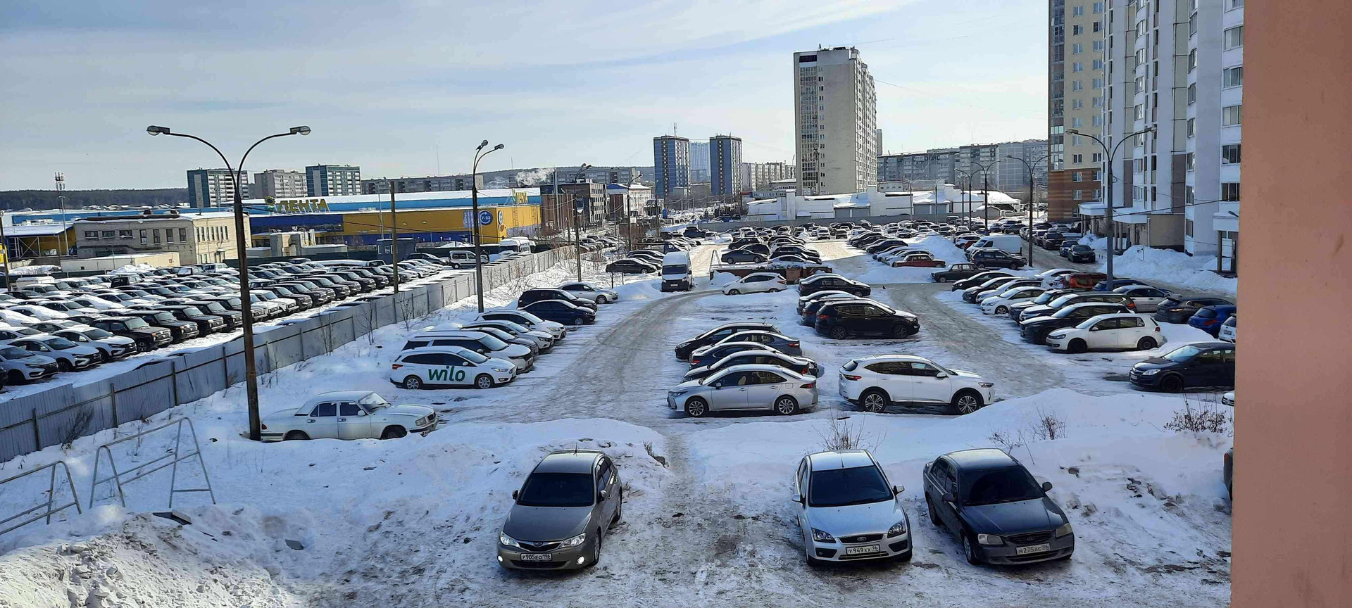 Во дворе - парковка с обеих сторон дома. Видеокамеры по всему периметру.