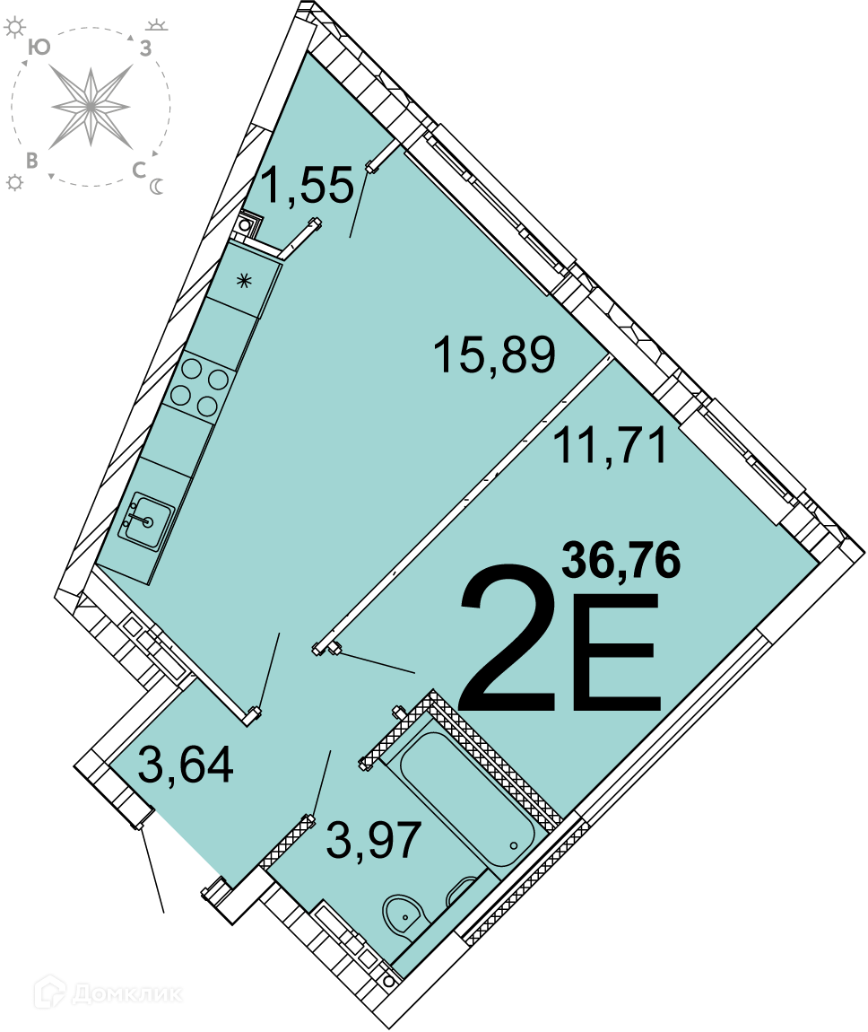 Общая площадь 36 м2