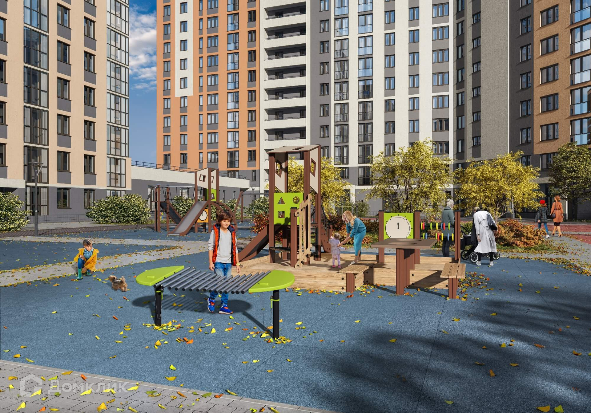 Во дворе workout зоны, подземный паркинг, пешеходный бульвар и детские игровые комплексы. На первых этажах располагаются торговые галереи. В пешей доступности расположены поликлиника для взрослых, Академия тенниса, Дворец дзюдо и трамвайное кольцо.