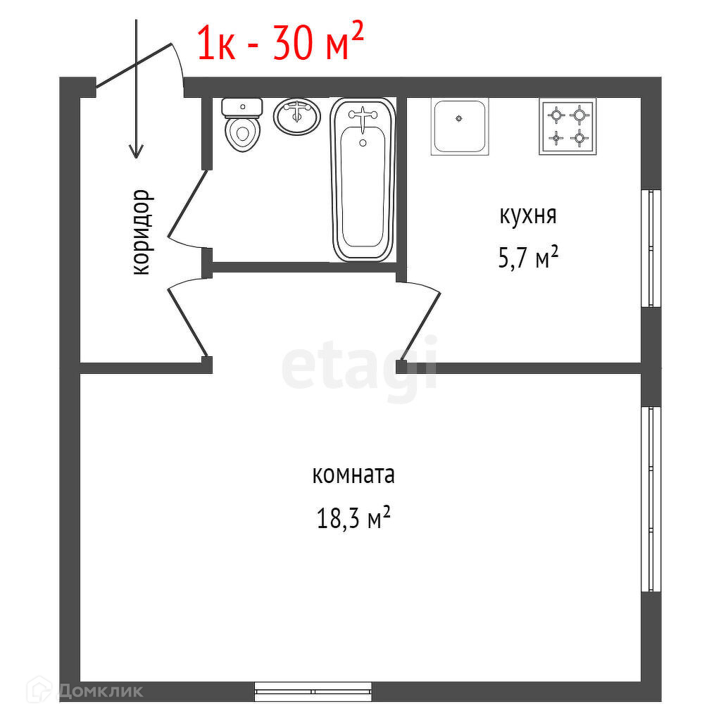 Общая площадь 30 м2
