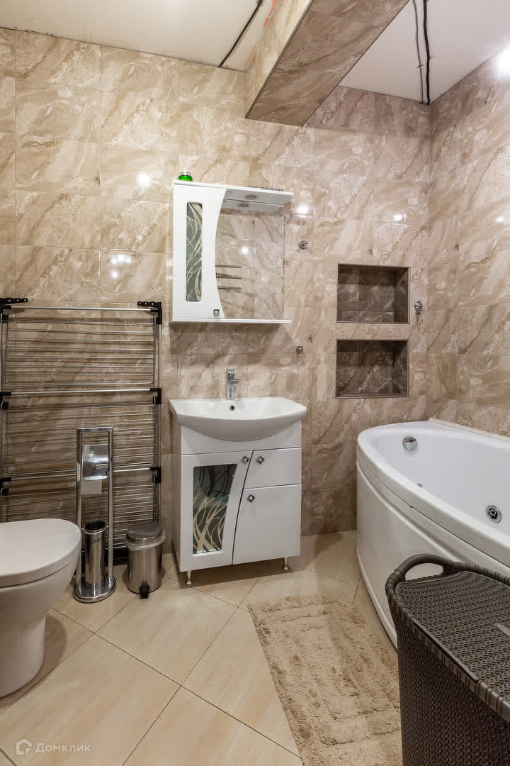 В квартире остаётся кухонный гарнитур Лорена с встроенной техникой от известного бренда Bosch - варочная панель, духовой шкаф, посудомоечная машина и вытяжка. Благодаря системе теплого пола в санузлах вы будете чувствовать себя комфортно даже в самые холодные дни. А чтобы вода всегда была горячей, установлен водонагреватель Electrolux.