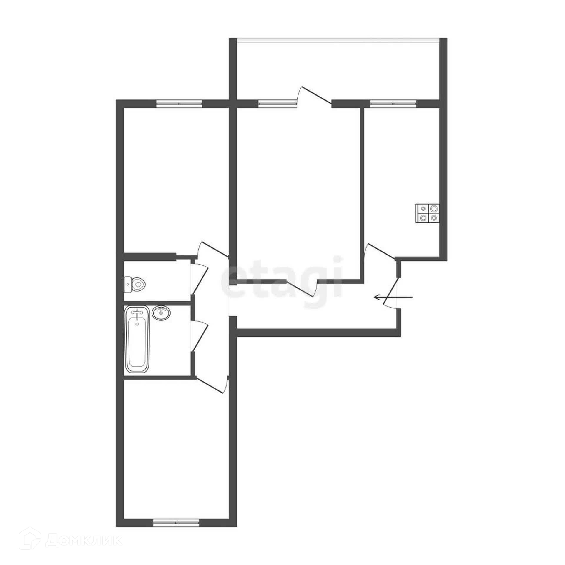 3-комнатная квартира, 61.5 м2, этаж 9 / 10, на продажу в Екатеринбурге, Совхозная улица, 6