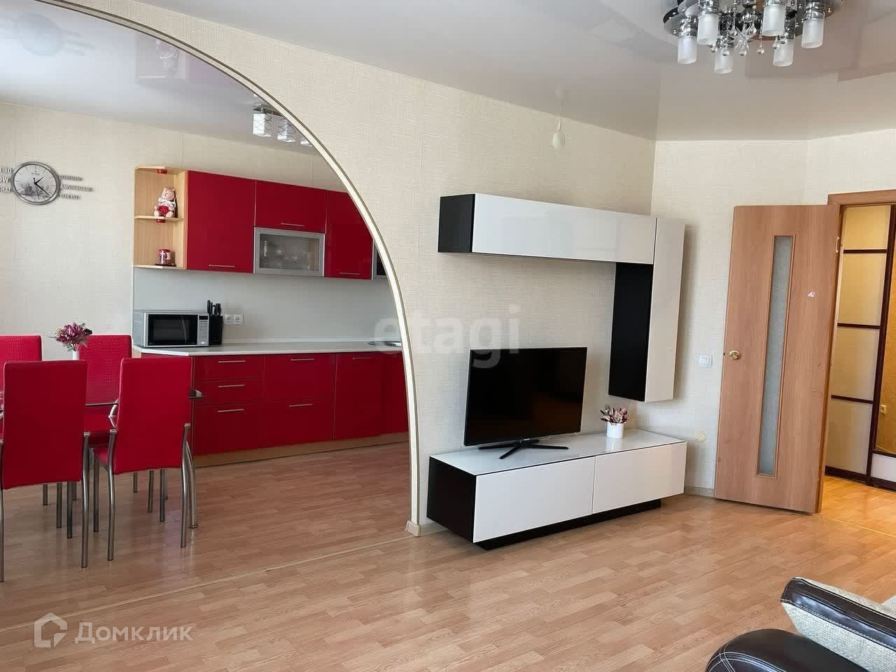 Продается просторная 3-комнатная квартира в ЖК Калиновский. В дизайне квартиры применено интересное планировочное решение: Сделана перепланировка - кухня совмещена и в то же время отделена перегородкой.