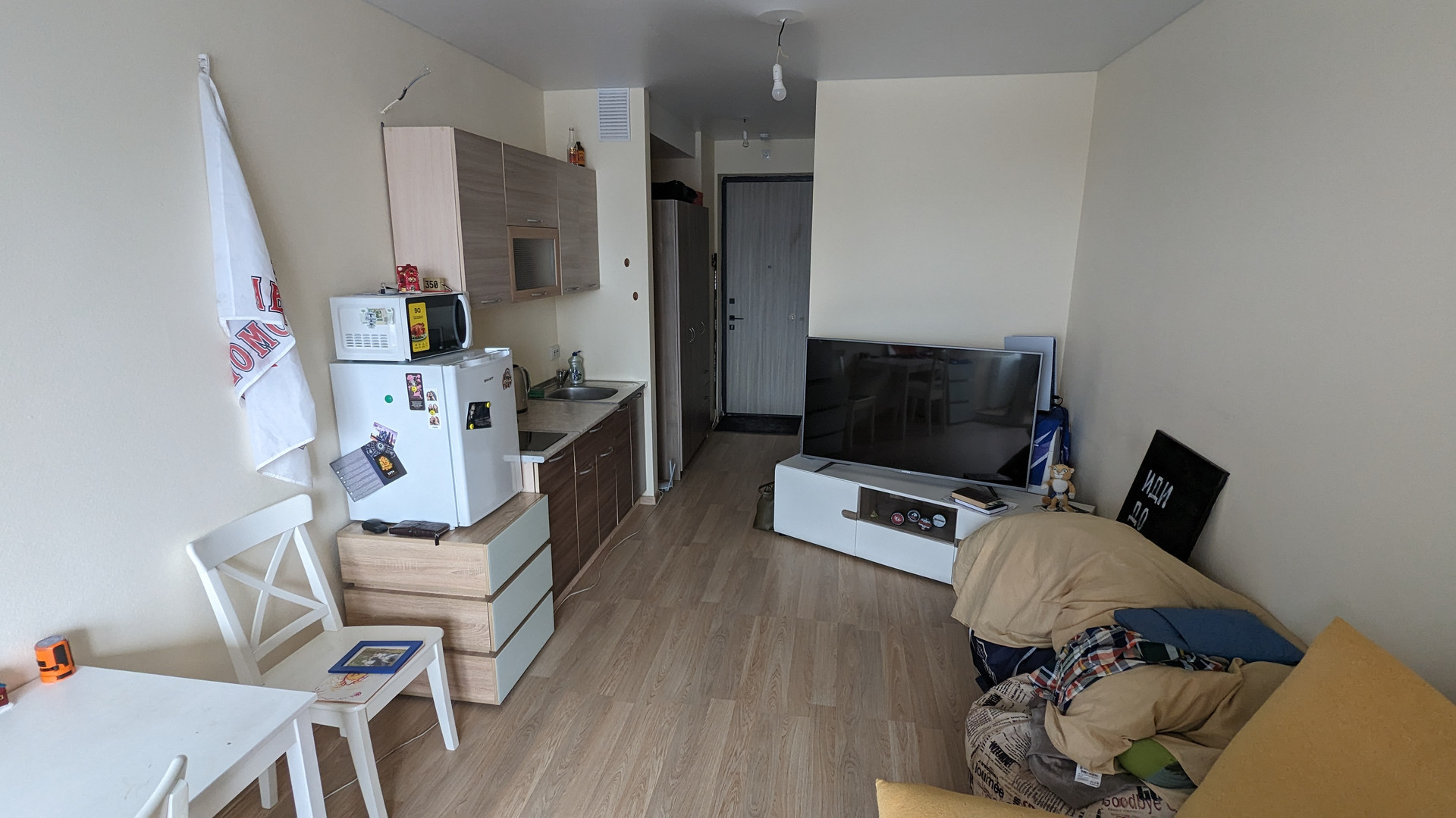 Удобное планирование, функциональная студия с разделением зон.