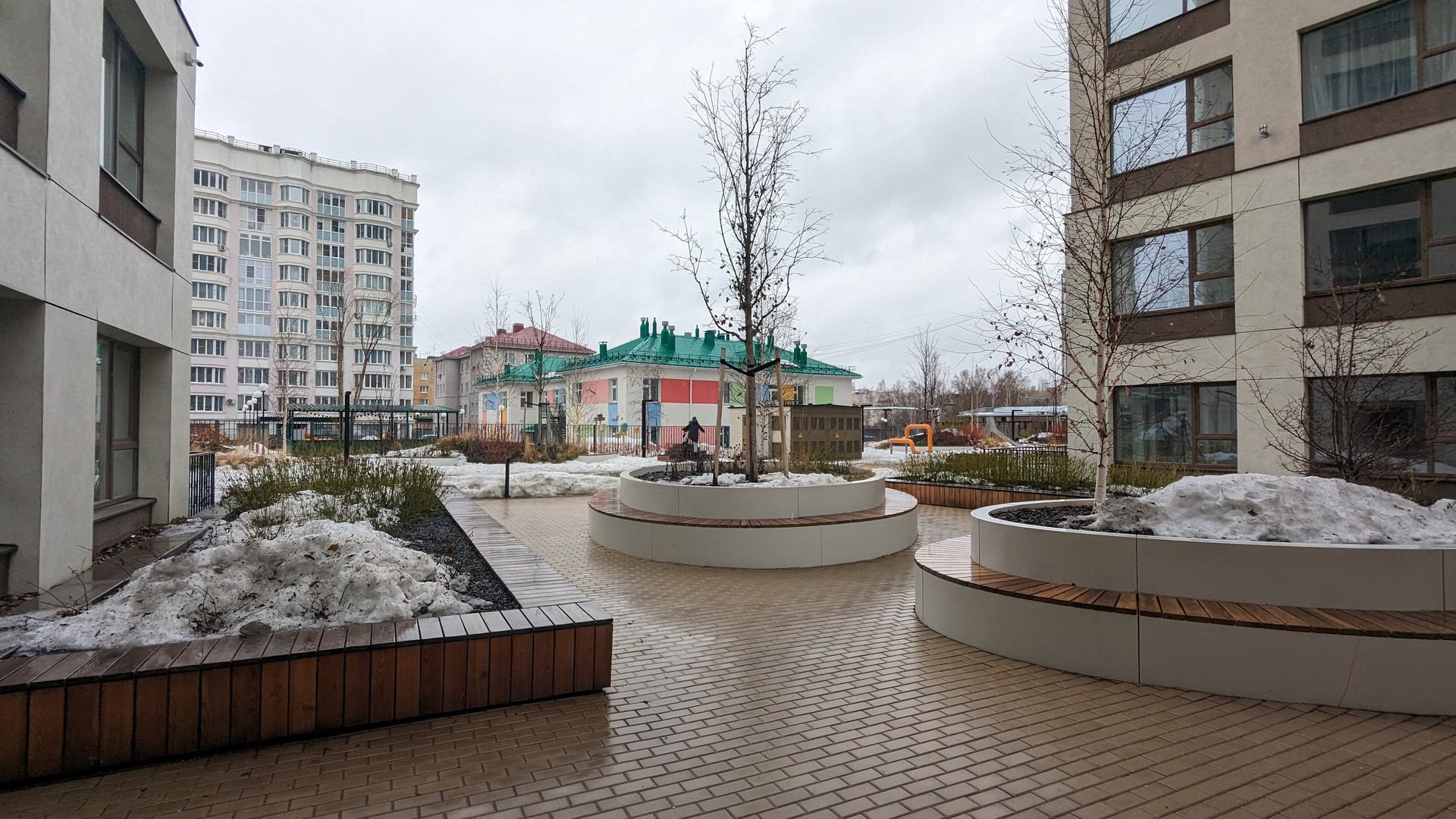 Рядом с домом расположены парк, магазины, кафе, а также своя закрытая территория с террасой и детской площадкой.