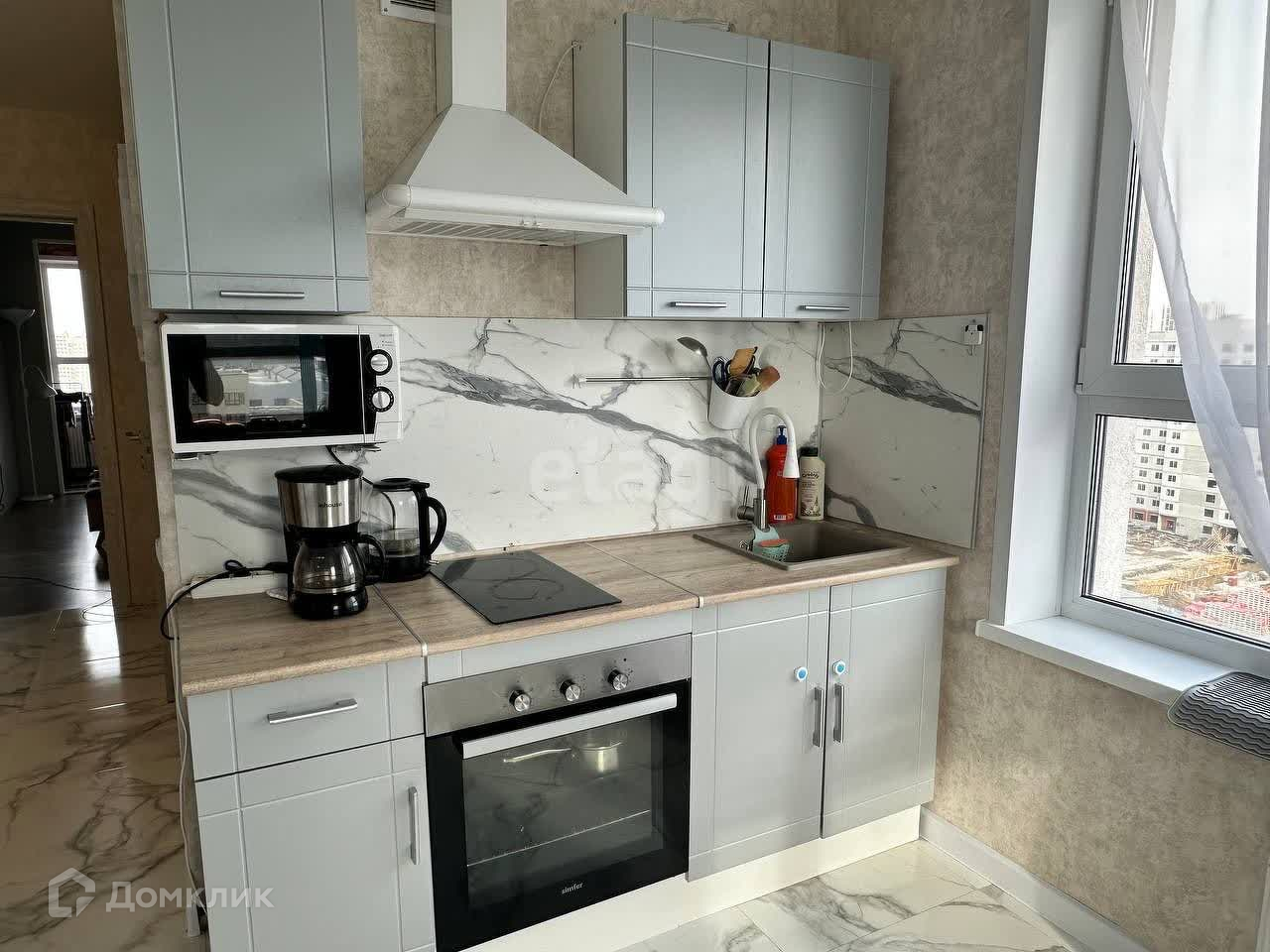 Ремонт в квартире выполнен в 2022 году в светлых тонах с использованием качественных материалов. Теплая лоджия добавляет дополнительное пространство для отдыха или работы. В кухне-гостиной установлены гарнитур и встроенная техника, а санузел оборудован просторной ванной комнатой с сантехникой и смесителями.