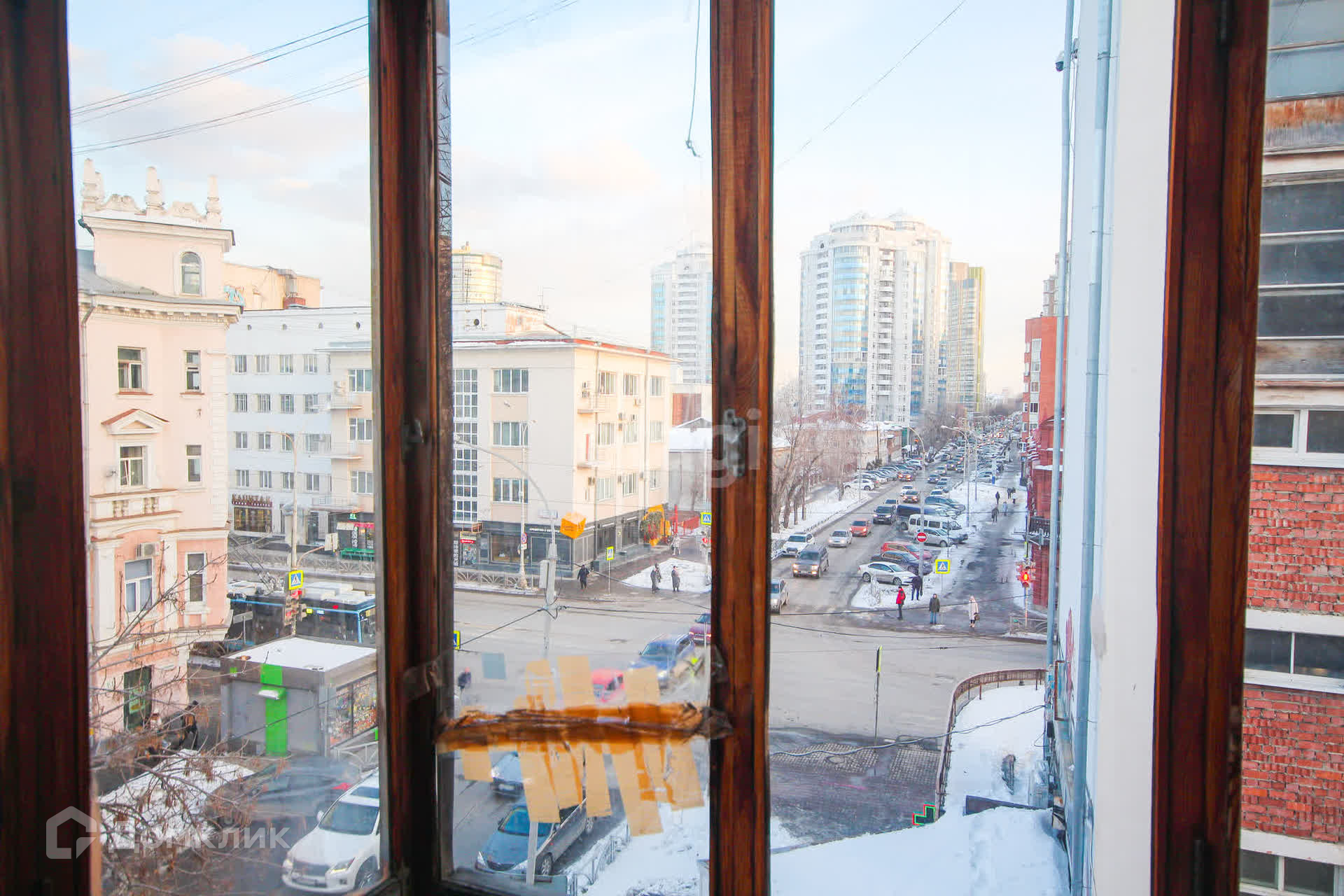 -шикарный вид из окна на город, солнечная сторона