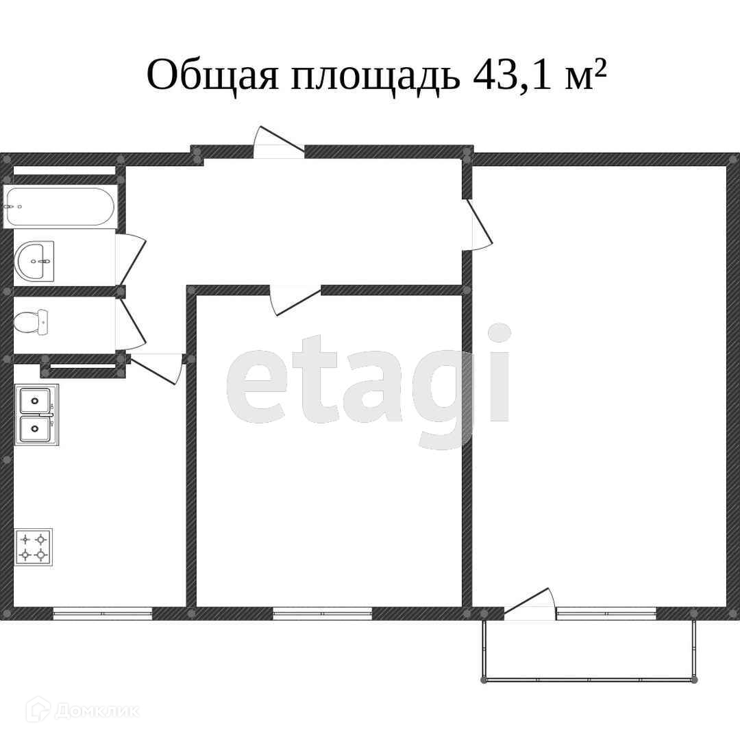 Общая площадь 42.7 м2